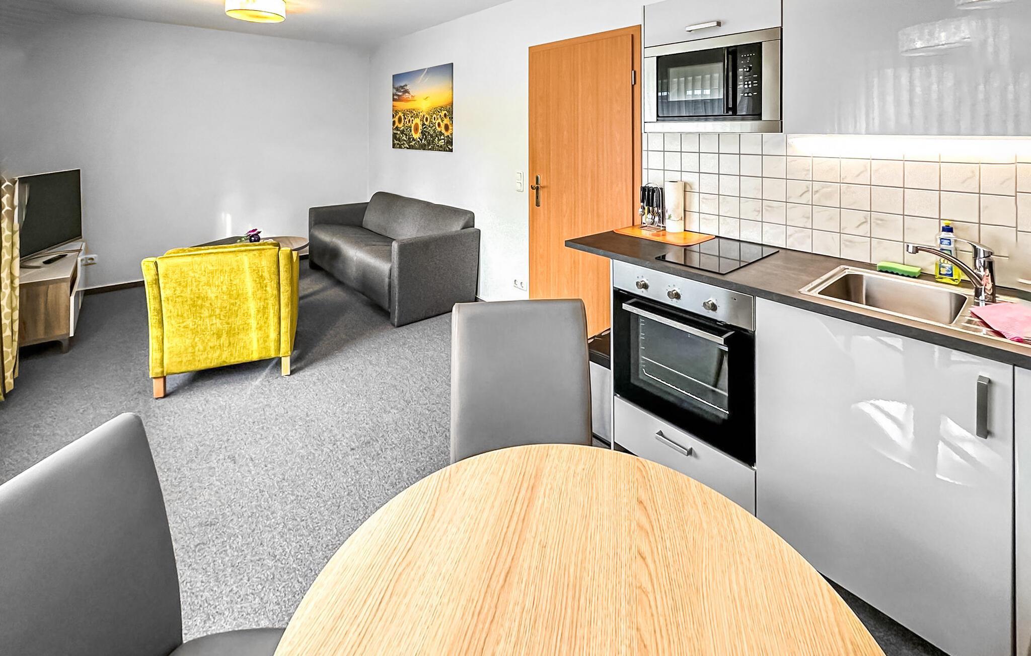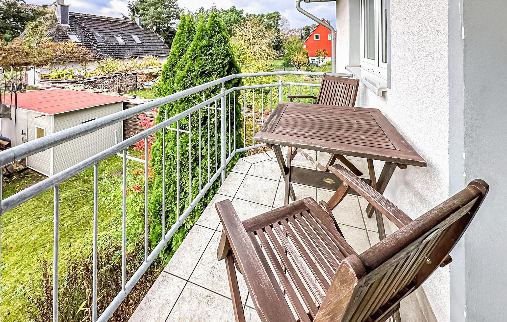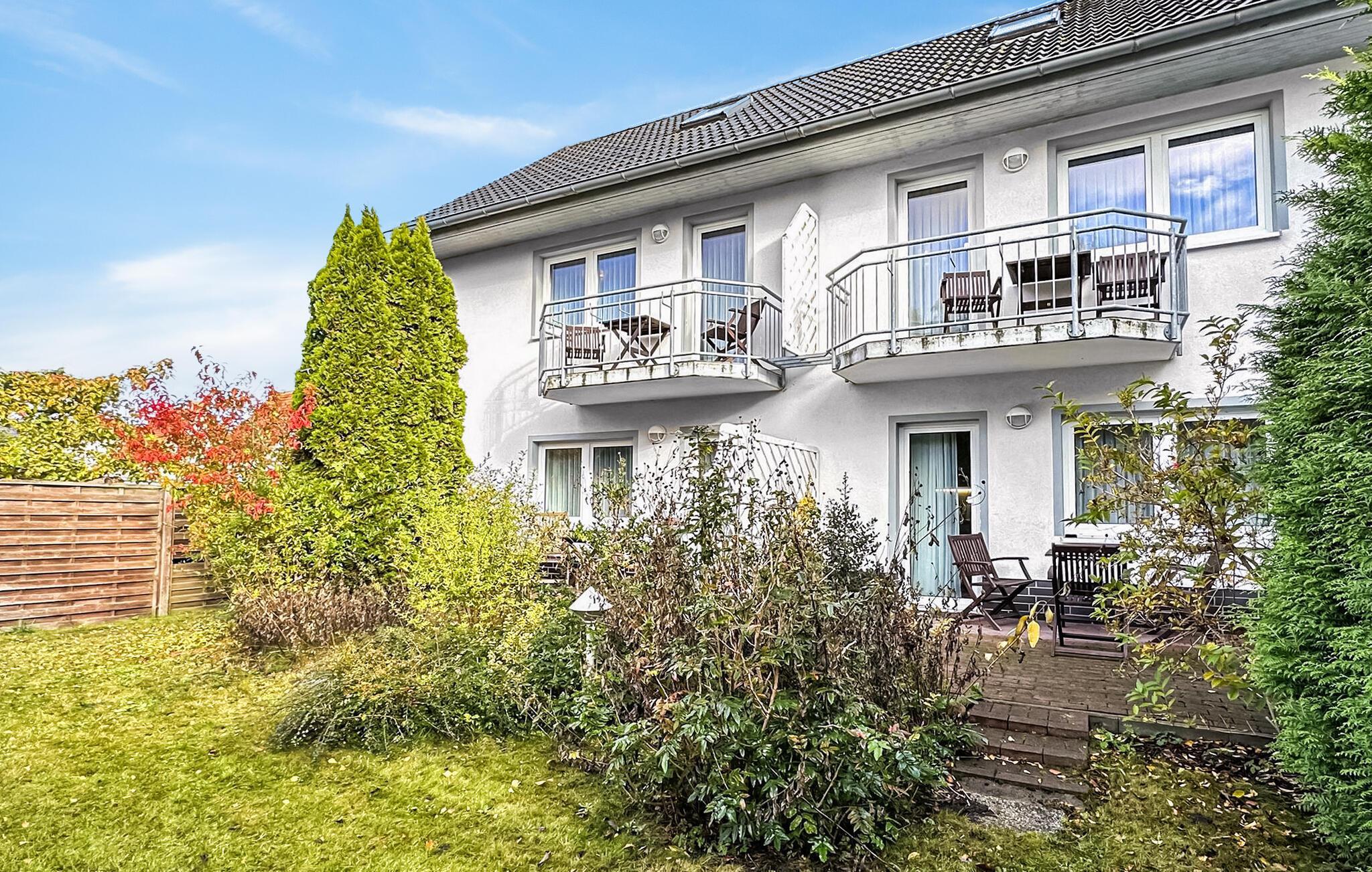 De fire ikke-ryger ferielejligheder ligger i et feriehus på en grund på cirka 1.400 kvadratmeter centralt i Østersøferiestedet Trassenheide. Der er omkring 1,6 km til Østersøstranden. Butikker, restauranter og caféer er inden for få hundrede meter.Alle lejligheder blev omfattende moderniseret og nyindrettet i 2020. 3-værelses lejligheden på 62 kvadratmeter til 4 personer ligger på øverste eller loftsetage og kan nås via en central trappe. Det har en stue med spisebord og åbent tekøkken (polstrede møbler, fladskærms-tv, spisebord, el-komfur, ovn, køleskab med fryser, mikroovn, forskellige køkkenmaskiner), et badeværelse med bruser/toilet og et soveværelse med dobbeltseng (adgangsrum til badeværelset). En pladsbesparende trappe fører til endnu en stue/soveplads med 2 enkeltsenge, tv og siddepladser. Der er også en møbleret balkon. En barneseng og høj stol kan stilles til rådighed for små børn. WiFi er også tilgængeligt. Til hver lejlighed på ejendommen er der en parkeringsplads, cykelstativer og en central grillplads på naboejendommen. Den samlede pris inkluderer slutrengøring, sengelinned, håndklæder samt vand- og energiforbrug. I feriestedet Trassenheide ved Østersøen er feriegæster forpligtet til at betale en spaskat (betales kontant på stedet). Trassenheide, badebyen i den nordlige del af øen Usedom, er kendetegnet ved sin fine sandstrand. Nudist- og hundebadestrand i nærheden. Stedet er forbundet med øens cykelnet. Begivenheder og koncerter finder sted på promenaden om sommeren.