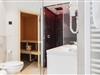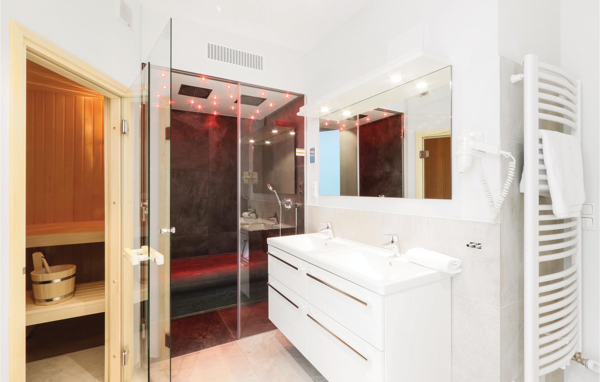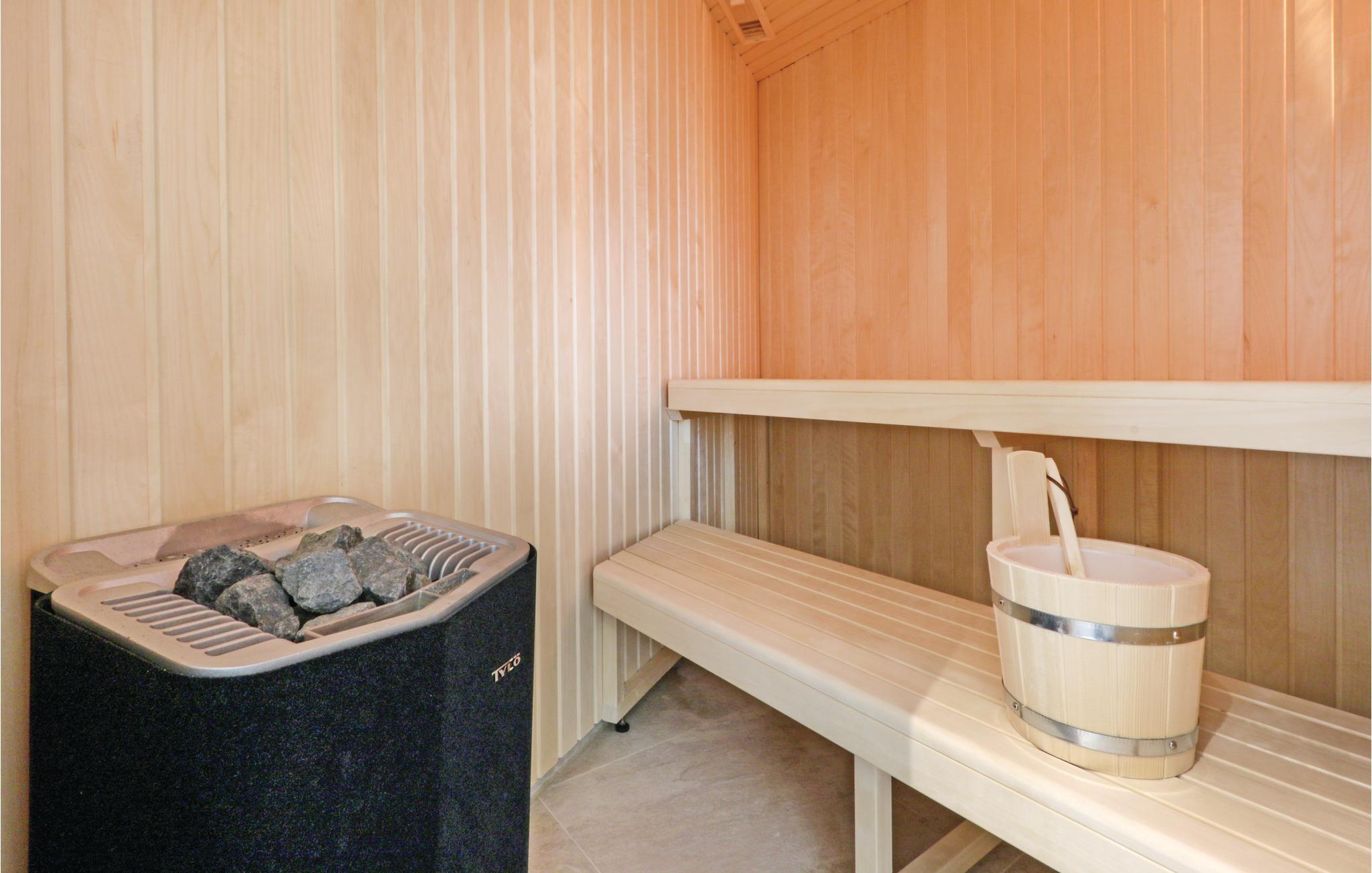 Noget særligt at badeværelset, der er jeres helt personlige lille wellnessområde med sauna og dampbad med integreret regnbruser. Ikke nok med det, når badet er slut, kan I sætte jer foran de flakkende flammer i bioetanol-kaminen, som giver et hyggeligt lys. Sofaen lader sig nemt forvandle til to bekvemme sovemuligheder ved at trække i nogle få håndtag.