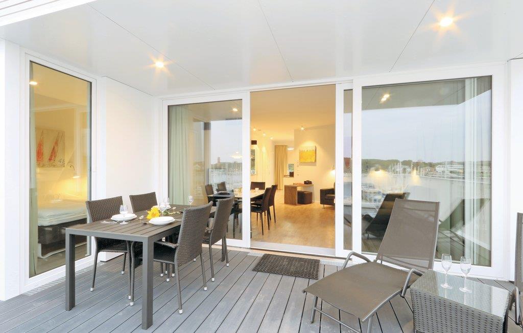 Denne eksklusive ferielejlighed ligger i en promenadevilla lige i hjertet af det moderne ferieresort BeachBay ved Schleswig-Holsteins østersøkyst. Fra ferieboligens tagterasse har I en fantastisk udsigt over havnen i Travemünde, floden Trave og Østersøen.