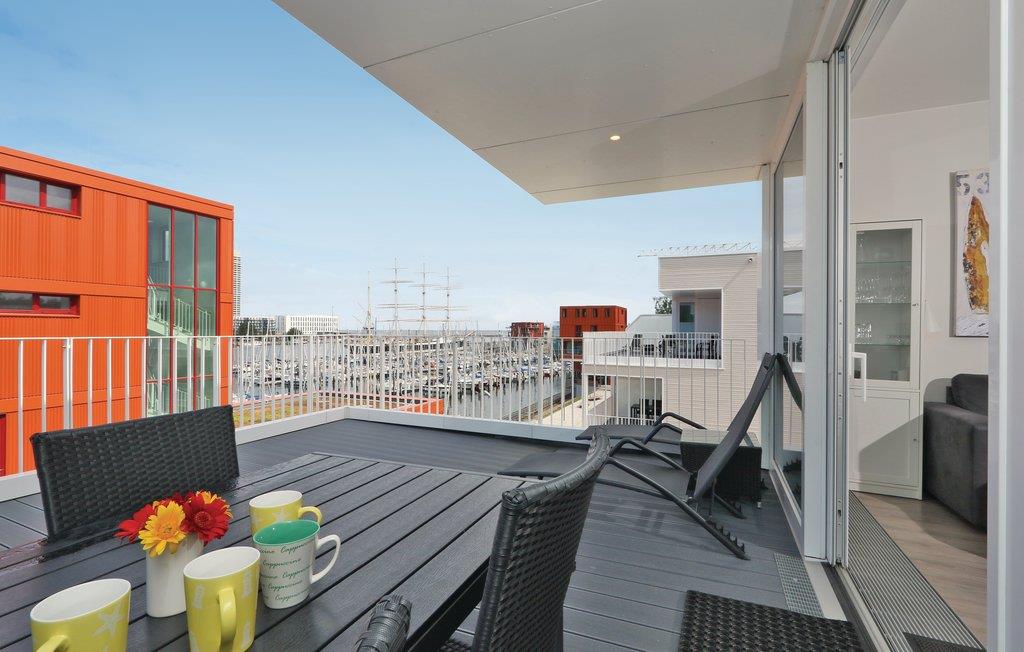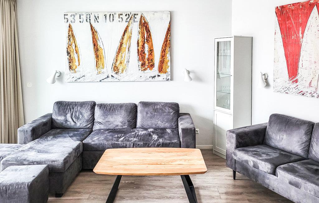 Denne eksklusive ferielejlighed i en promenadevilla ligger lige i hjertet af det nye BeachBay-feriested i Travemünde på østersøkysten i Slesvig-Holsten.