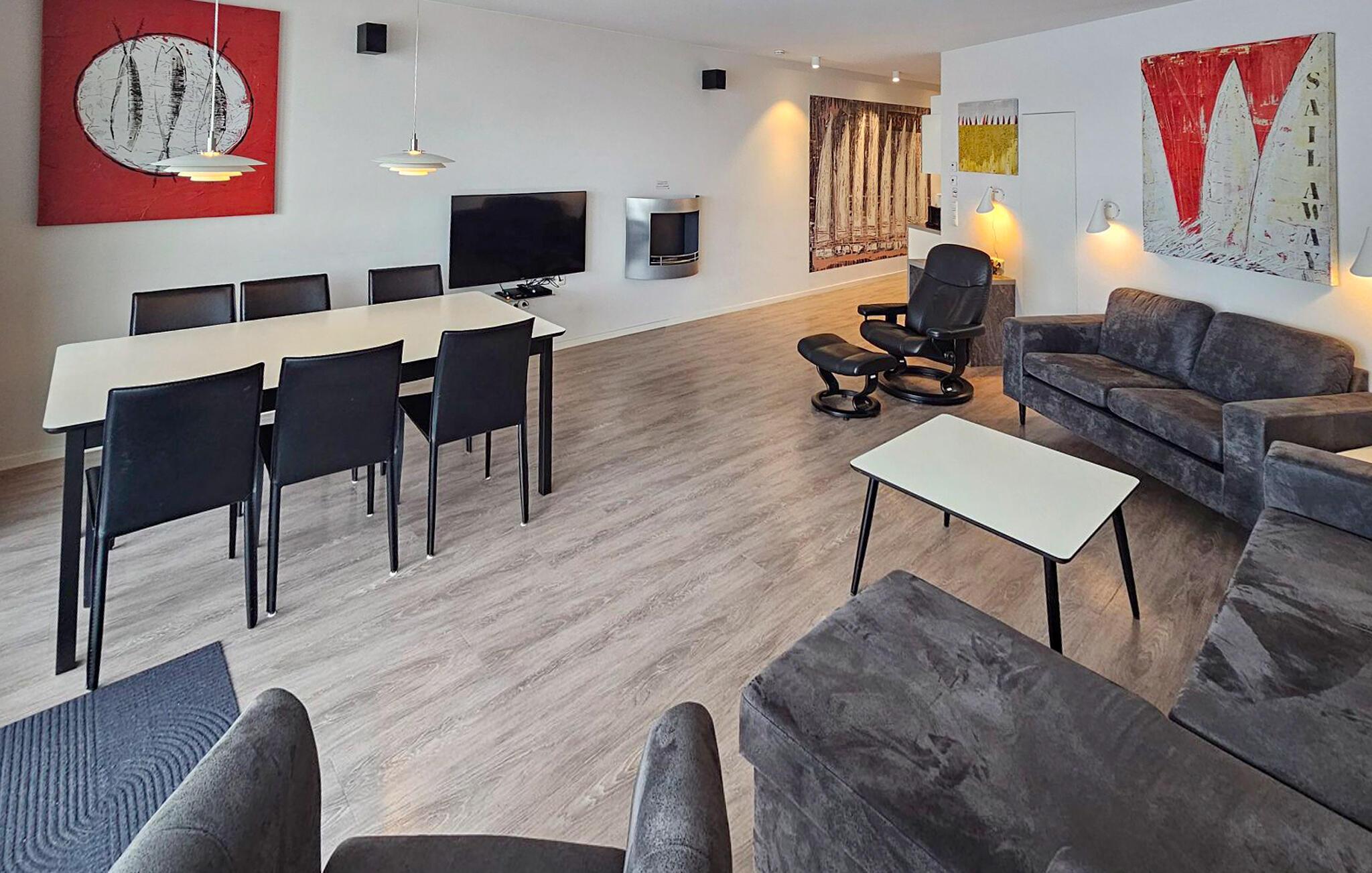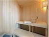 Lejligheden er stilfuldt og moderne indrettet med lækre kvalitetsløsninger. Badeværelset er noget helt særligt, for her har I jeres personlige lille wellness-område, hvor der er sauna og dampbad med integreret dobbelt regnbruser.