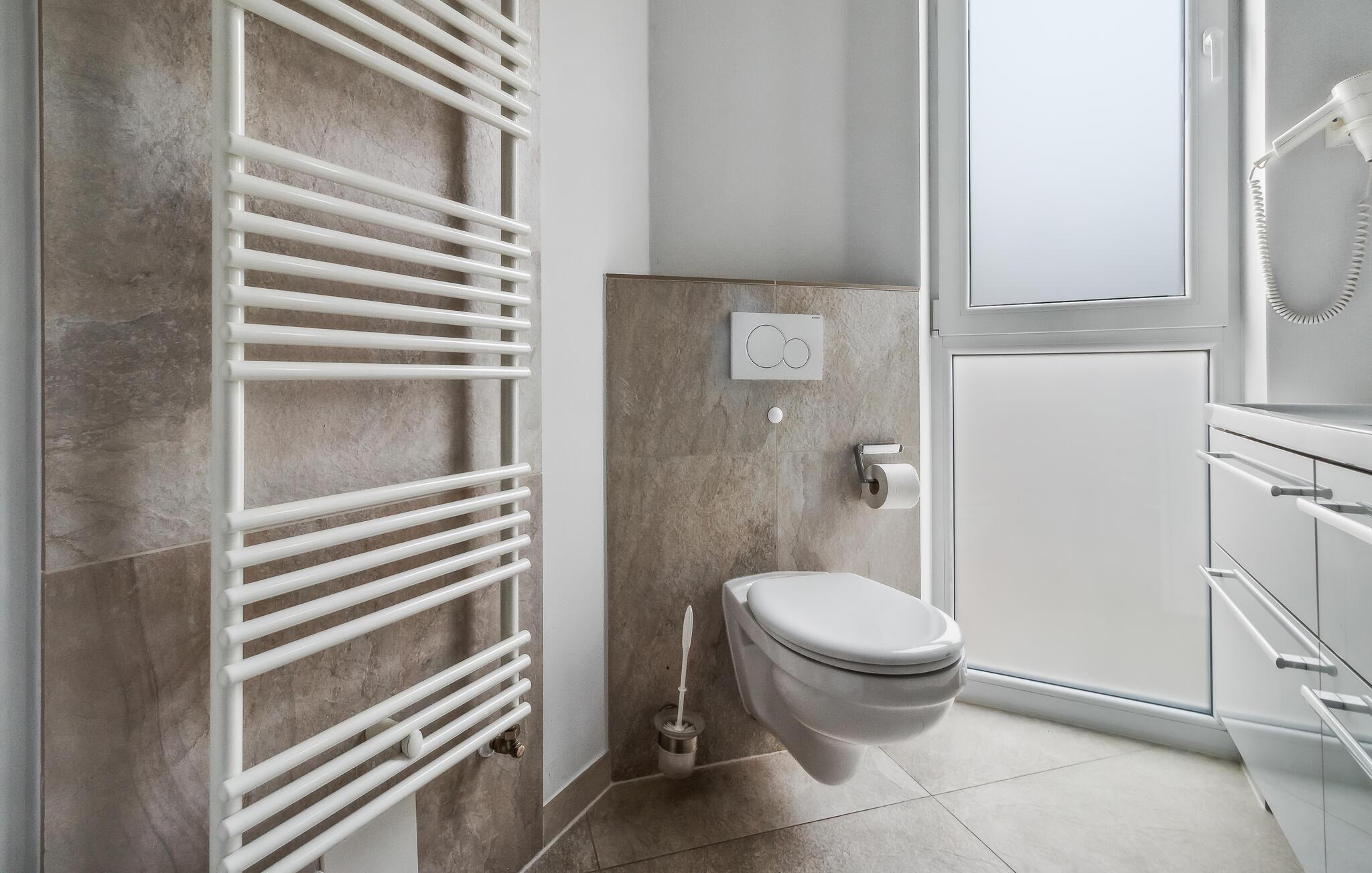 Badeværelse (nr. 1) - WC. Varmt og koldt vand. Bruser