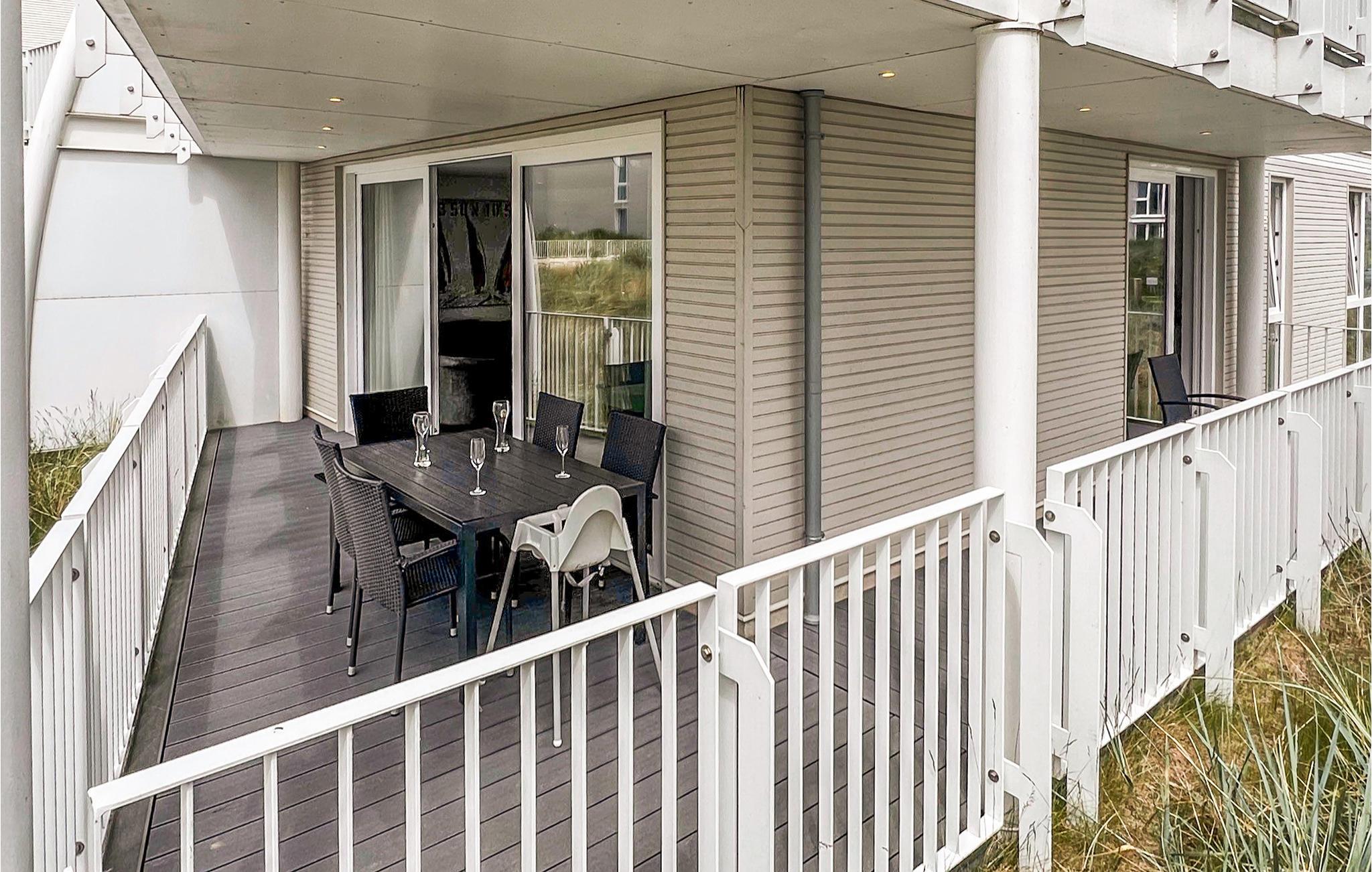 Denne moderne ferielejlighed ligger i husets stueetage og råder over en stor overdækket terrasse med havemøbler. Nyd den friske havluft og udsigten over det anlagte klitlandskab. Ved receptionen kan I leje en kikkert og observere de mange fantastiske fuglearter. I køkkenet er der en nespresso-kaffemaskine (medbring selv jeres yndlingskapsler), samt termokande og filtre til selvbryg, hvis I foretrækker den klassiske filterkaffe.