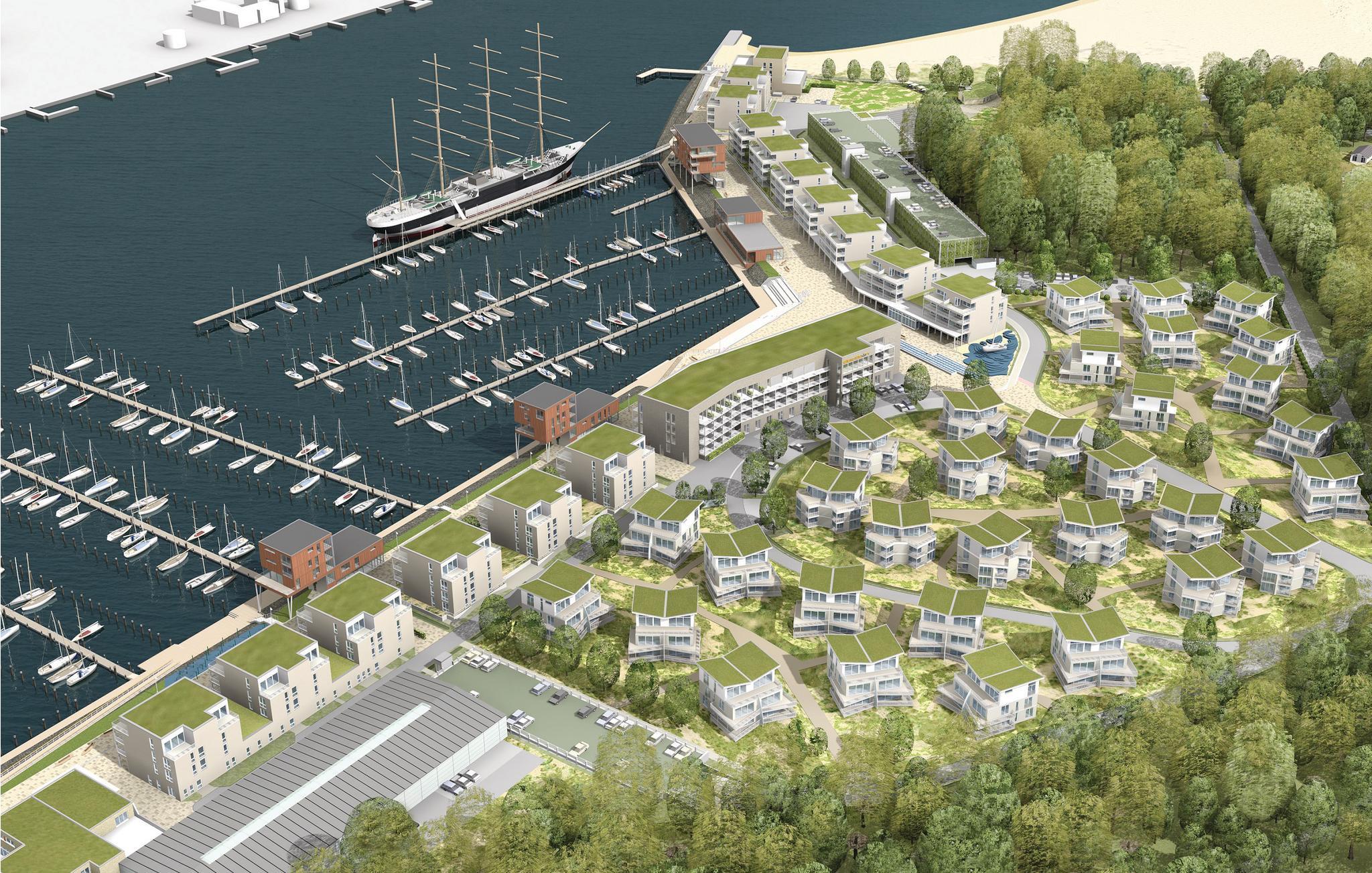 Her kan I også se det smukke skib Passat, der i dag fungerer som museum. Husene er bygget med træ, har store vinduer og er holdt i et farvespil i varme toner. Klitlandskabet er anlagt.