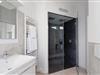 Badeværelset præsenterer sig som jeres helt eget wellnessområde med dampbad og dobbelt regnbruser.