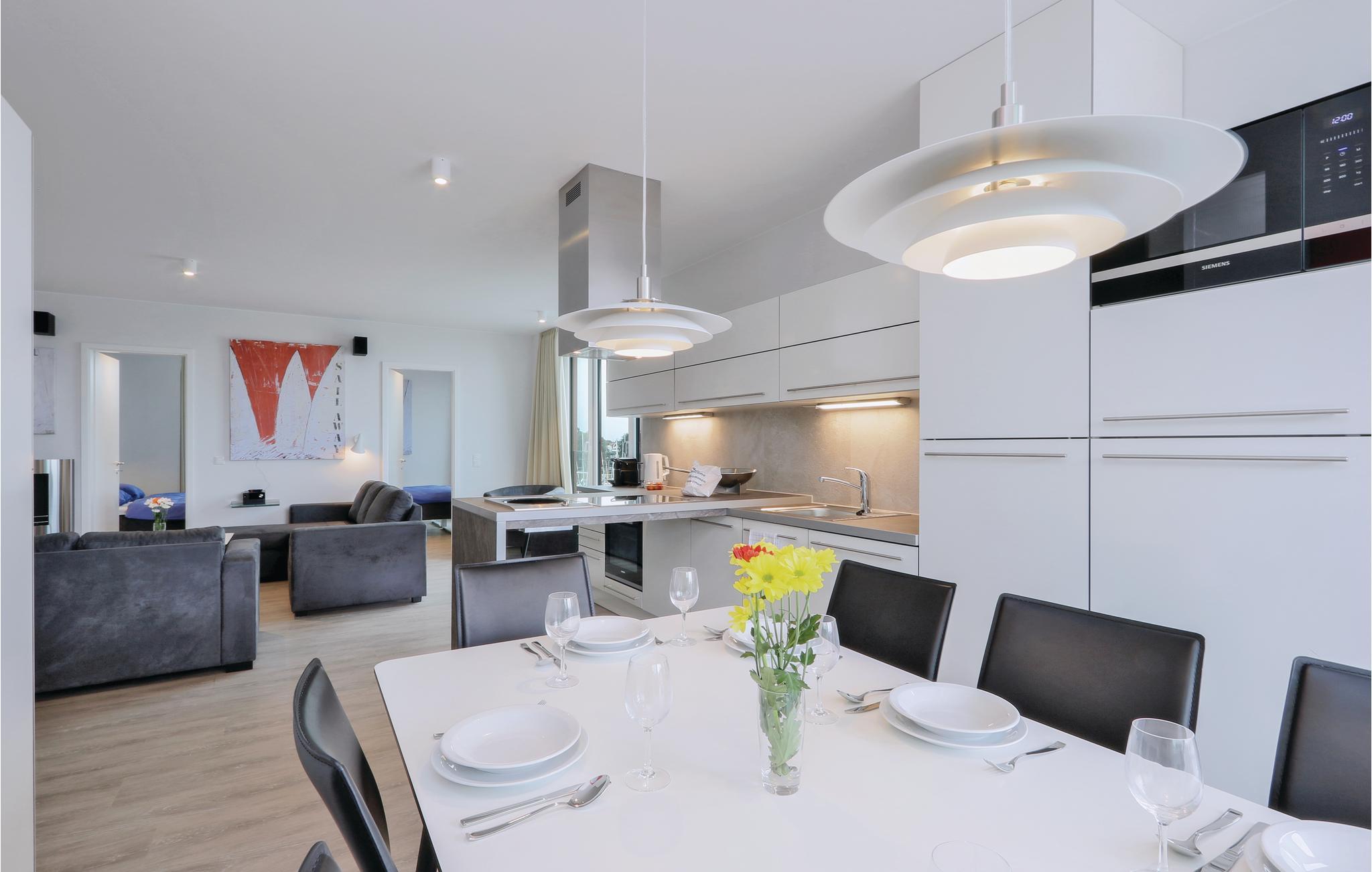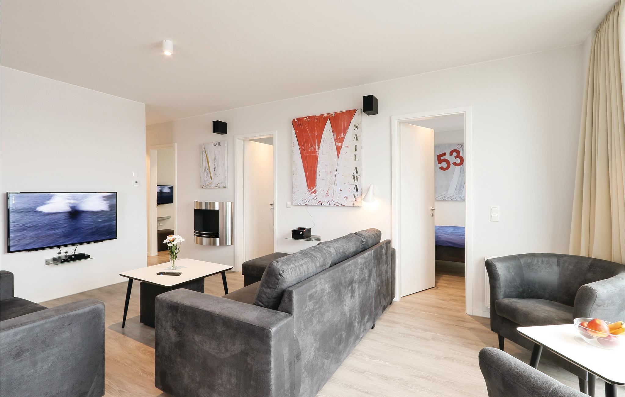 Selvfølgelig er der også et moderne entertainment-anlæg i ferielejligheden ved BeachBay, Blu-ray, musikanlæg og tv. I kan mod at betale pant, leje en kikkert i receptionen, så I kan holde øje med alt der foregår i havnen, på havet og på den anden side af Trave. I kan også nyde ferielivet i stuen foran kaminens flakkende flammer (bioethanol) som giver en særlig intim stemning.