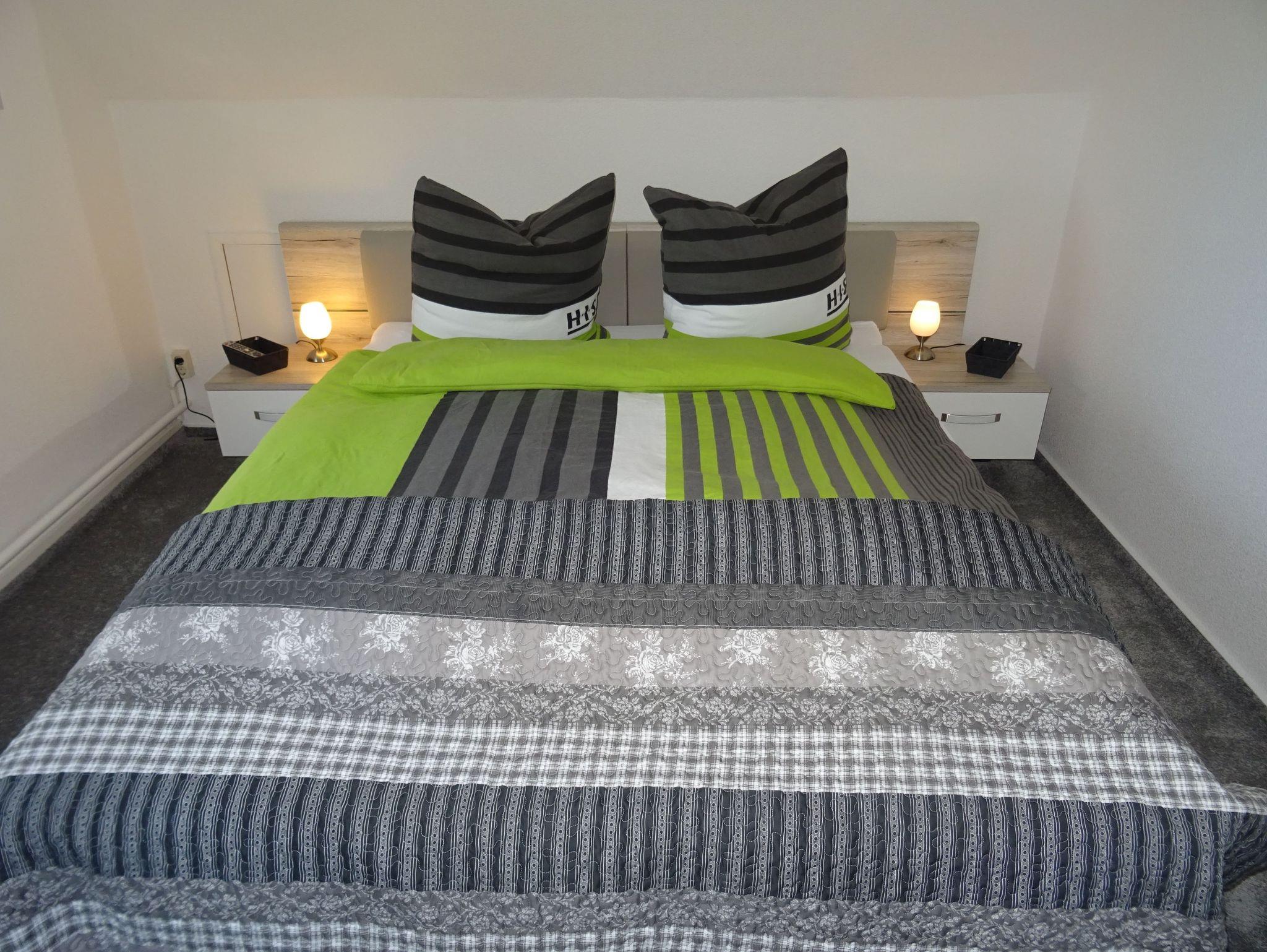 Im Obergeschoss befinden sich zwei Schlafzimmer, beide sind mit einem Flachbild - TV ausgestattet.