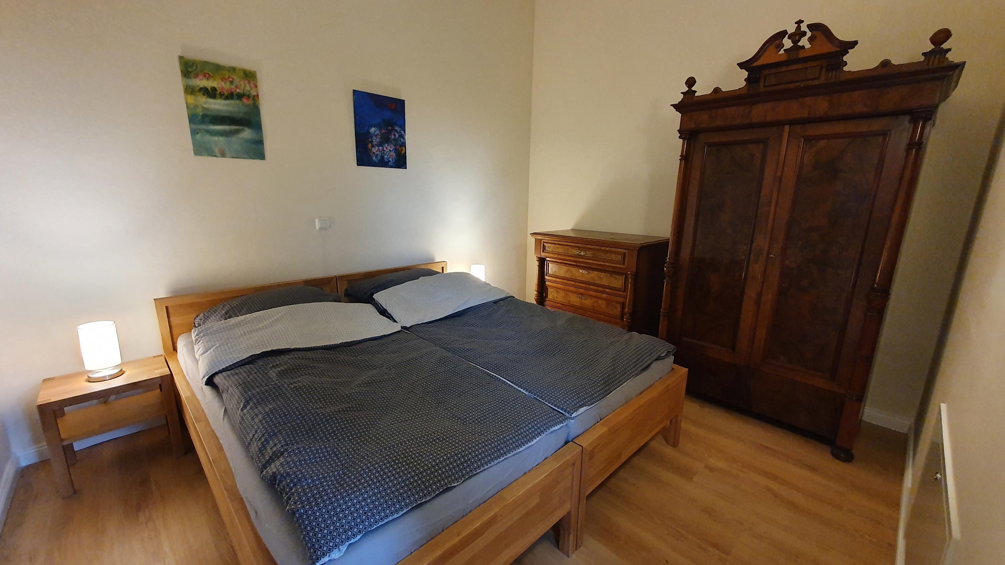 Das Elternschlafzimmer verfügt über ein 180 x 200 cm großes Doppelbett mit zwei Matratzen, das Kinderschlafzimmer über zwei 90 x 200 cm große Einzelbetten. Im Wohnzimmer gibt es zusätzlich noch zwei Schlafsofas.