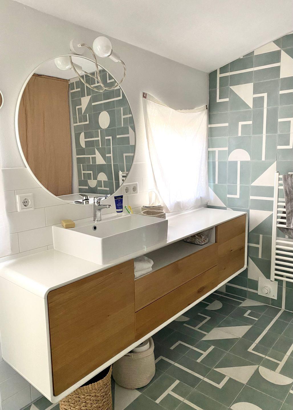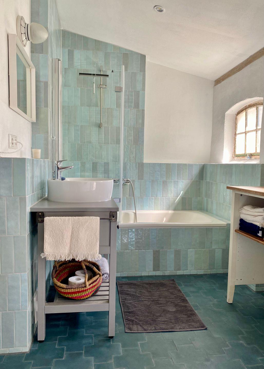 Das Ferienhaus bietet Platz für bis zu sieben Personen und erstreckt sich über vier Zimmer, darunter zwei Schlafzimmer. In einem der Schlafzimmer erwartet Sie ein gemütliches Doppelbett, während das andere mit zwei komfortablen Einzelbetten ausgestattet ist. Das Zusammenspiel von rustikalem Charme und modernem Komfort setzt sich in der gut ausgestatteten Küche fort. Hier finden Sie nicht nur einen Kühlschrank mit Eiswürfelspender, sondern auch einen hochmodernen Induktionsherd sowie eine Espressomaschine. Ein gemütlicher Esstisch vor der Küche lädt zu gemeinsamen Mahlzeiten ein.