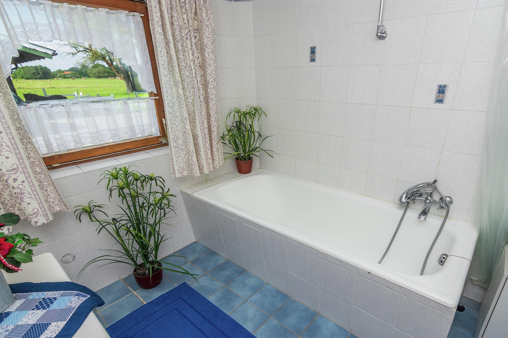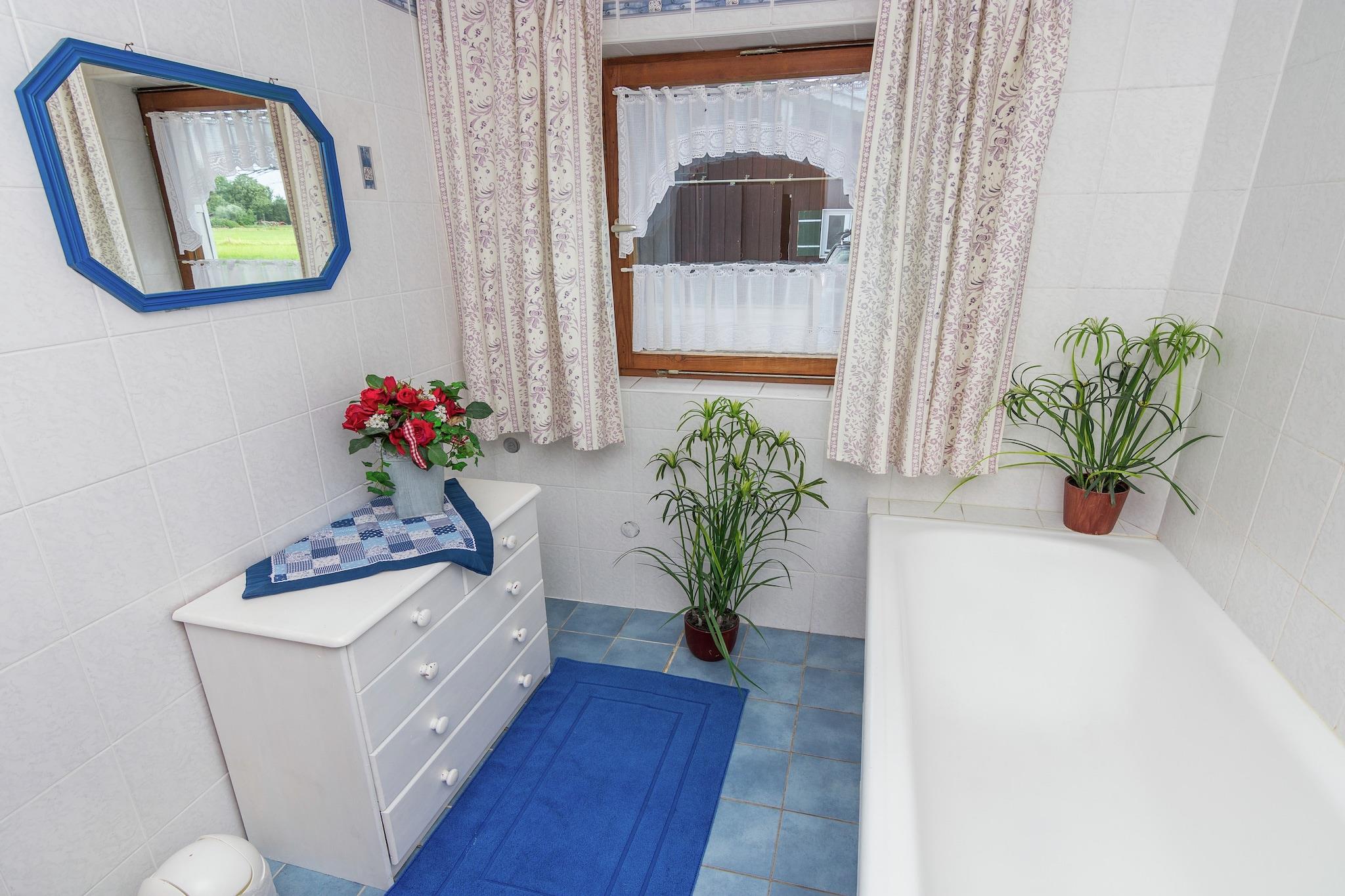 Denne indbydende stuelejlighed i Feldwies (Übersee) er perfekt til en lille familie på fire. Med to komfortable soveværelser og hyggelig centralvarme giver det en varm base for afslapning året rundt. Efter travle dage med at udforske kan du slappe af i den betalte sauna eller boblebad, eller fyre op for grillen på din private terrasse og nyde den friske bjergluft. Ideelt beliggende kun 500 meter fra byens centrum og restauranter og 800 meter fra en naturskøn sø, tilbyder dette ophold nem adgang til naturen og lokale smagsoplevelser. Dagligvarebutikker og pubber ligger kun 1 km væk, og den historiske Kufstein-fæstning er en fantastisk dagstur i nærheden. Vintergæster vil elske nærheden til skiområdet Chiemgau til skiløb og snowboardeventyr. Familier vil især sætte pris på den fælles have, komplet med legeplads og trampolin til de små. En barneseng og høj stol er til rådighed for ekstra bekvemmelighed. Parkering er til rådighed, og togstationen ligger 2 km væk, med lufthavnen på 57 km - hvilket gør denne charmerende lejlighed både fredelig og praktisk.