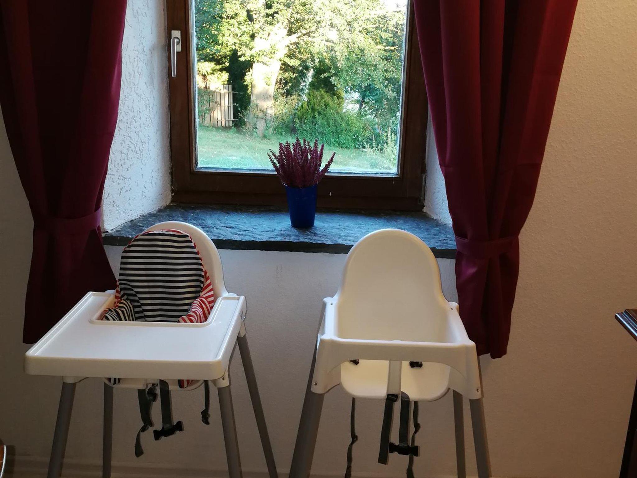 Treppenabsperrgitter, Gitterbett, Hochstühle. Spielecke mit Kaufladen, Puppenwagen und Puppenbett für die Kinder unserer kleinen Gäste, Gehfrei, Roller, Sportbuggy mit geländetauglichen Rädern, Autositz, Planschbecken.