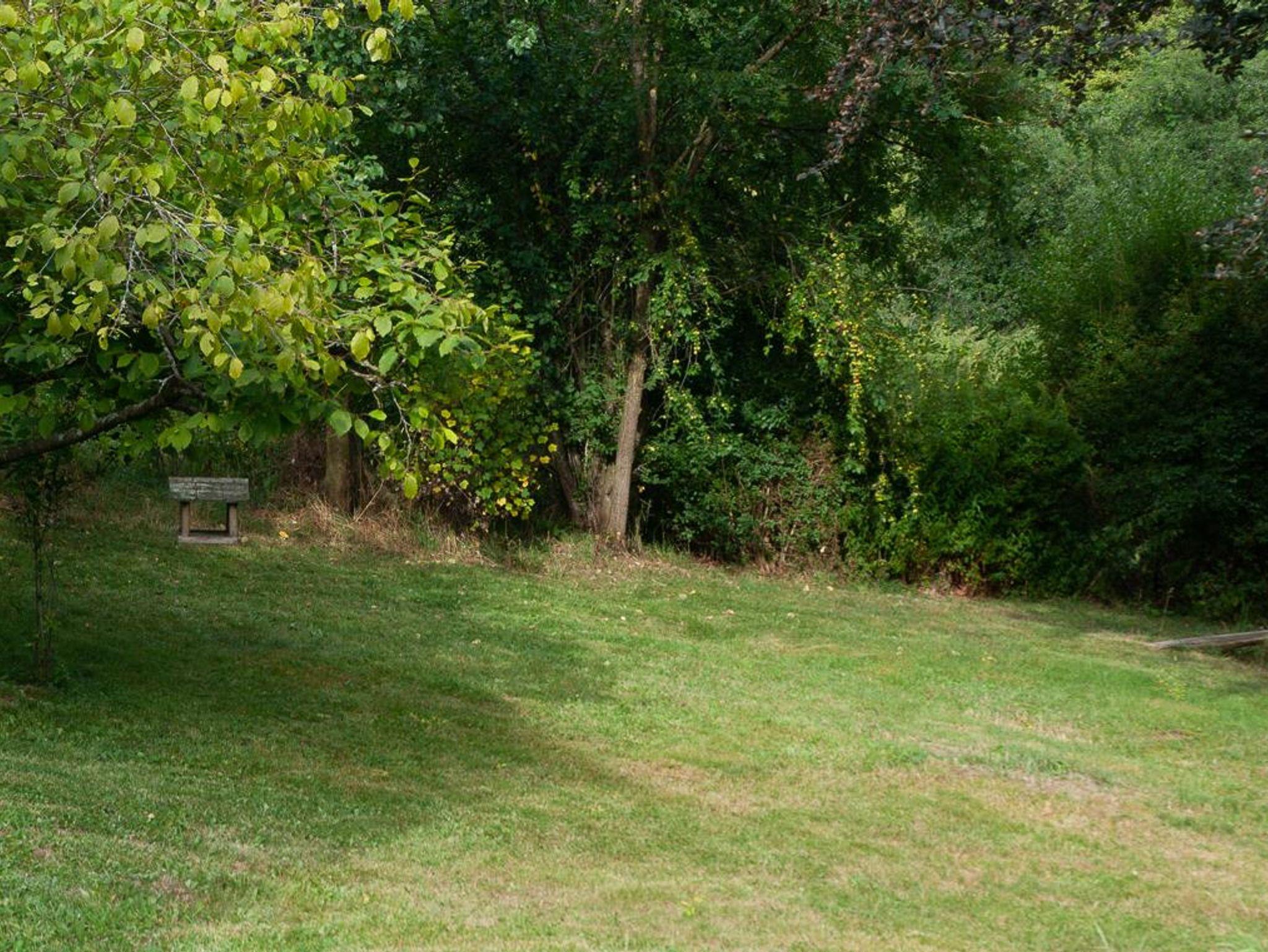 große Gartenanlage mit zwei Terrassen, eine davon überdacht, einer Gartendusche und einer Feuerstelle. Zwei Grills stehen zur verfügung.