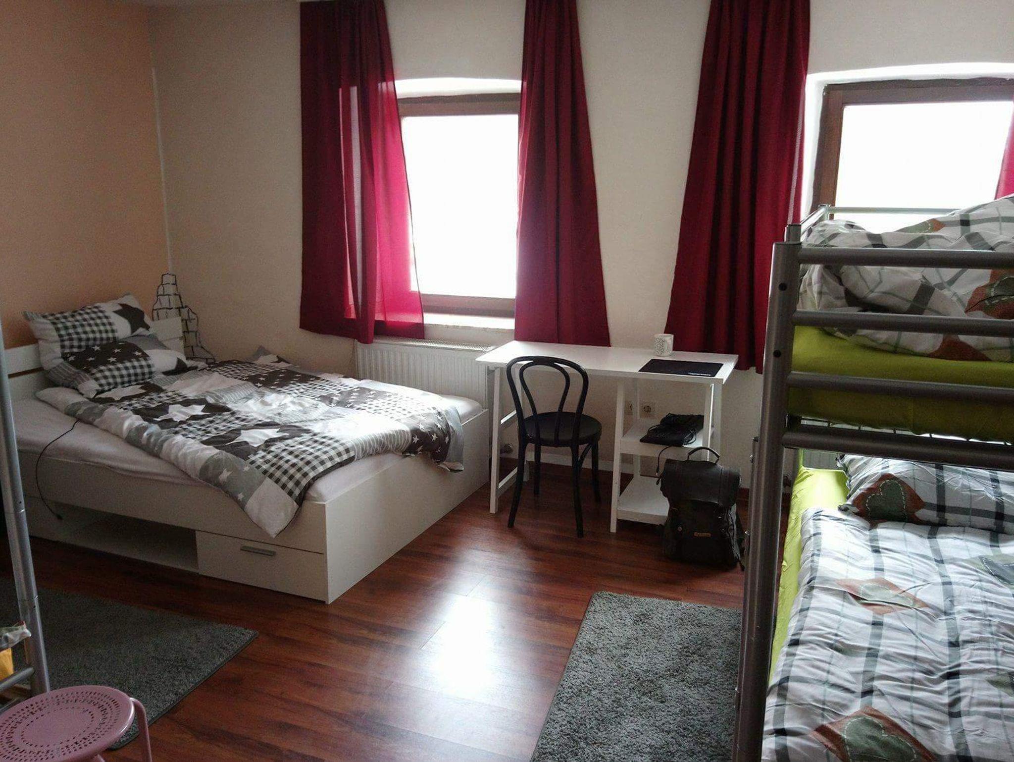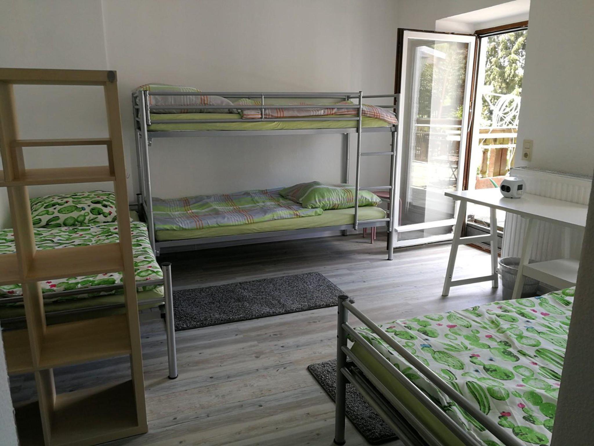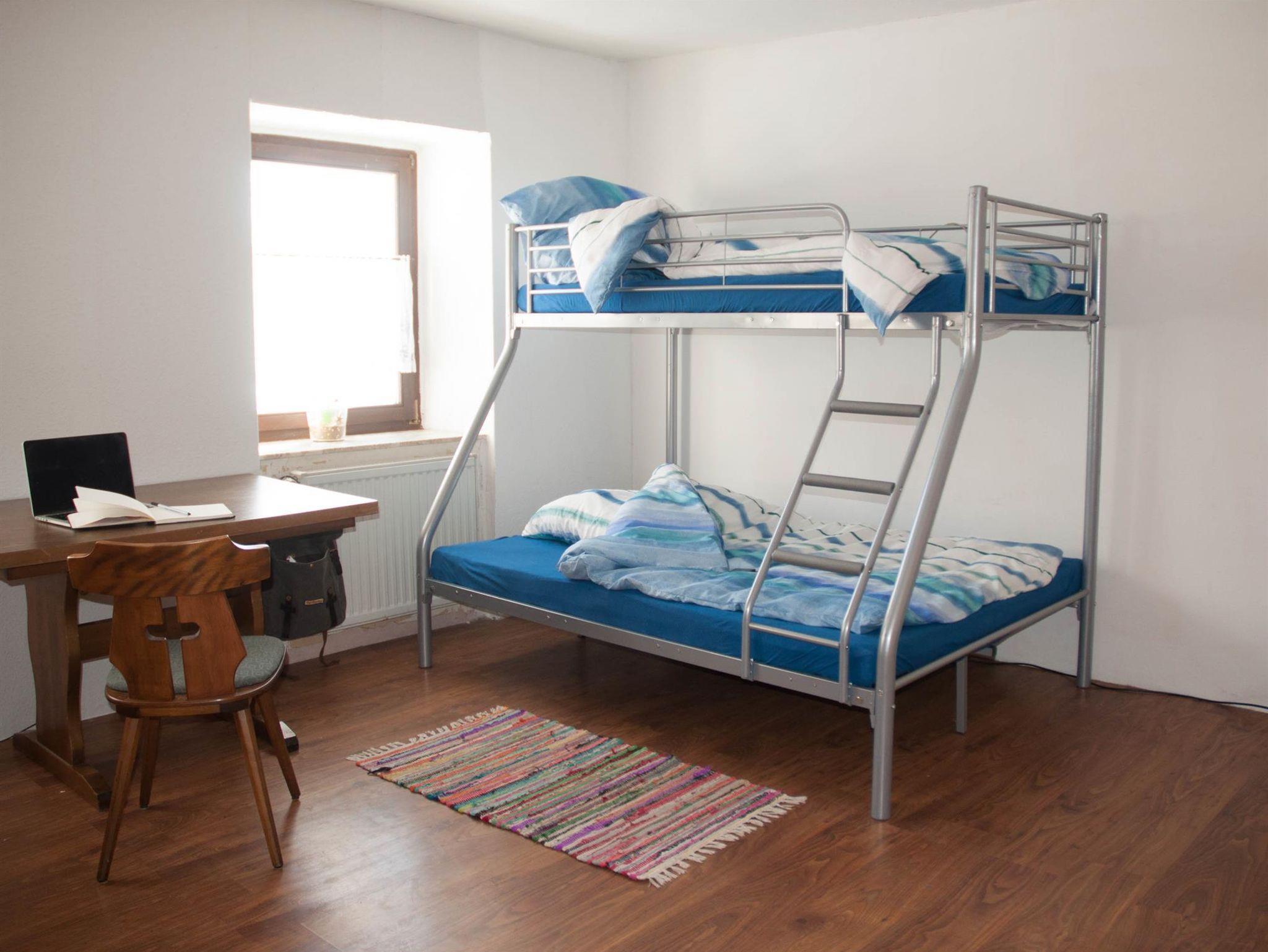 fünf Schlafzimmer mit jeweils vier bis fünf Betten, neun dieser Betten sind Etagenbetten, zwei der Betten sind 1,40 m breit. Es gibt 13 ebenerdige Betten. Jeder Schlafraum verfügt über ein eigenes Duschbad. In jedem Bad steht ein Haartrockner zur Verfügung.