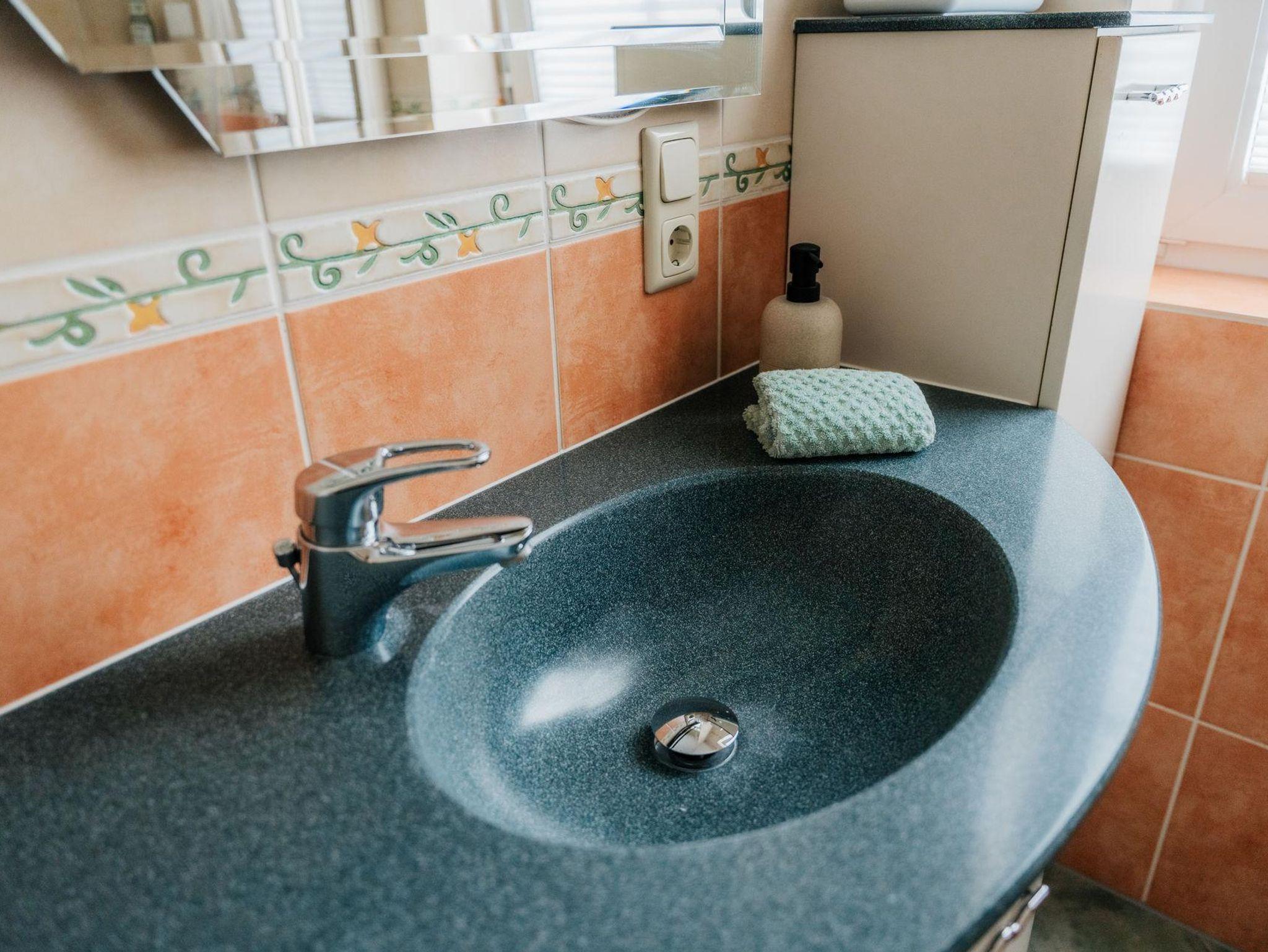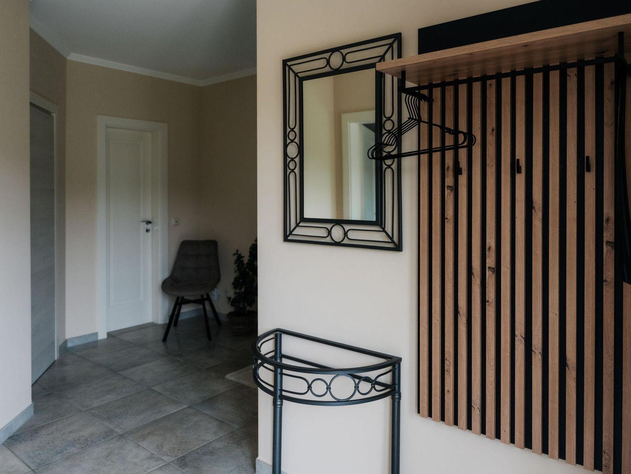 Die Wohnung mit seperatem Eingang verfügt über zwei komfortable Schlafzimmer, einen großzügigen Wohn- und Essbereich mit viel Platz zum Entspannen und Beisammensein sowie ein modernes Duschbad. Auf der sonnigen, überdachten Terrasse können Sie den Tag bei einem Frühstück im Freien beginnen oder einem Glas Wein am Abend ausklingen lassen. Zum Grillen steht ein Elektrogrill bereit. Die angrenzende Grünfläche darf gerne genutzt werden.