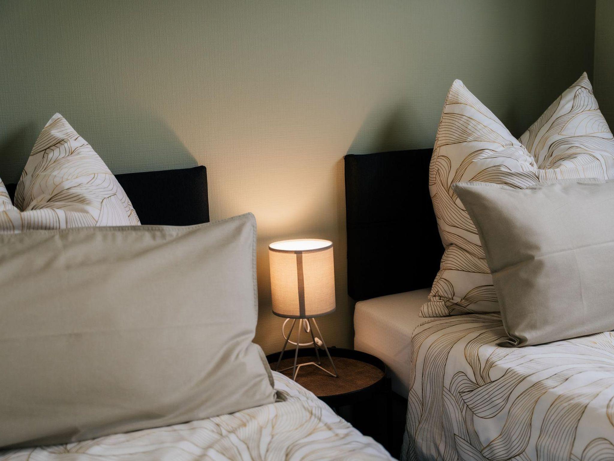 Das Schlafzimmer 1 verfügt über ein Doppelbett (1,80 x 2,00m) und das Schlafzimmer 2 verfügt über zwei Einzelbetten (0,90 x 2,00m) die zu einem Doppelbett zusammengefügt werden können.