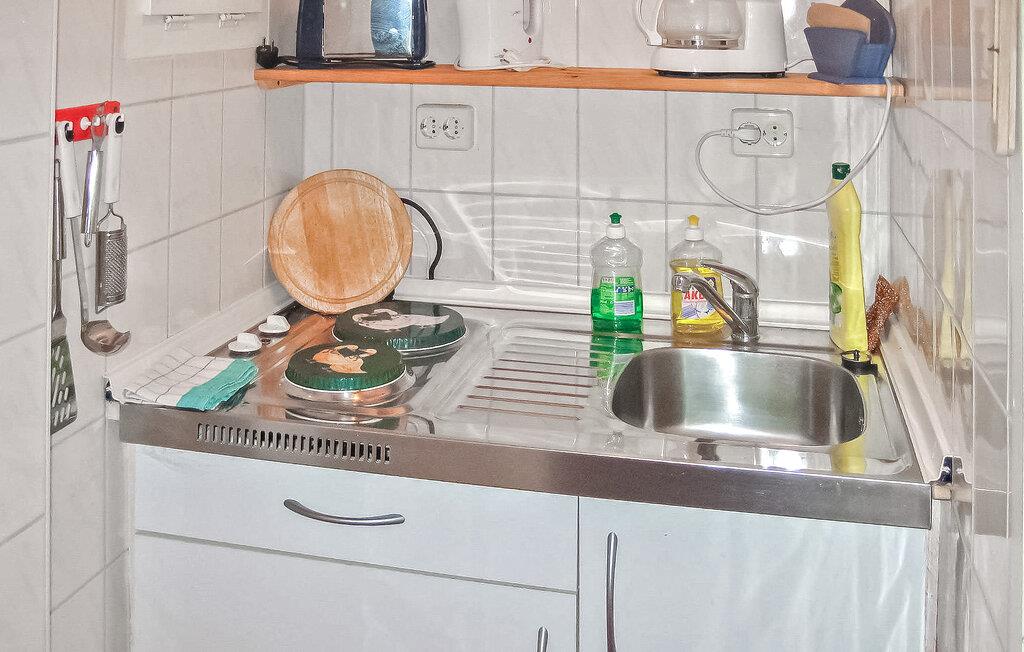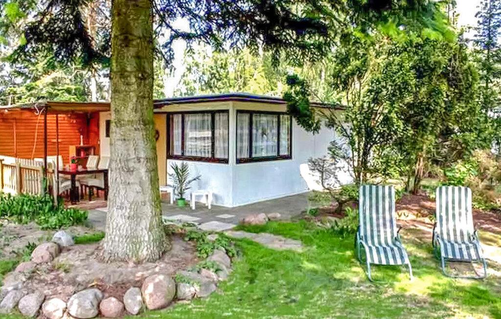 De otte feriehuse ligger på en 2500 kvadratmeter stor natur-/vandejendom direkte ved Szczecin-lagunen. Hvert sommerhus er individuelt og separat. En sti fører fra ejendommen direkte til stranden (ca. 50 m). Alle feriehuse har en møbleret terrasse eller et udendørs opholdsområde med grill og en parkeringsplads direkte ved bungalowen. Dette feriehus er udstyret med en stue (polstrede møbler, TV) 2 små. Soveværelser med 2 senge hver, pantry køkken, bad/WC, elvarme. En robåd, en tømmerflåde og en overdækket terrasse lige ved vandet med grill, rygeområde og bålplads står til fri afbenyttelse. Guidede motorbådsture er mulige efter aftale. Den samlede pris inkluderer: slutrengøring, sengelinned, håndklæder, vand og energiforbrug. Betales på stedet: turistskat. En lille hund på op til 40 cm er tilladt i denne ejendom i månederne juli-august. Uden for denne tid er større hunde også tilladt. Bellin, et distrikt i havnebyen Ueckermünde, er et lille feriested i et skovområde direkte ved Szczecin-lagunen. Butikker, restauranter og to strande er i byen. Der er cirka 5 km til Ueckermünde med dens zoologiske have og havn. Herfra er udflugter med passagerskib til Polen og øen Usedom mulige.