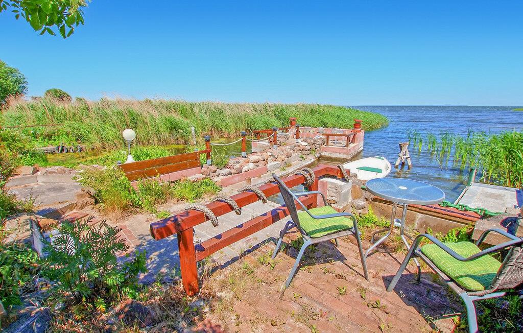 De otte feriehuse ligger på en 2500 kvadratmeter stor natur-/vandejendom direkte ved Szczecin-lagunen. Hvert sommerhus er individuelt og separat. En sti fører fra ejendommen direkte til stranden (ca. 50 m). Alle feriehuse har en møbleret terrasse eller et udendørs opholdsområde med grill og en parkeringsplads direkte ved bungalowen. Faciliteter med: Dagligstue (polstrede møbler, spisebord, tv), 2 soveværelser (1 x boksmadrasser, 1 x i kælder via trappe med 2 enkeltsenge), tekøkken (elkomfur med ovn, køleskab med fryser, div. køkkenmaskiner), elvarme . En robåd, en tømmerflåde og en overdækket terrasse lige ved vandet med grill, rygeområde og bålplads står til fri afbenyttelse. Guidede motorbådsture er mulige efter aftale. Den samlede pris inkluderer: slutrengøring, sengelinned, håndklæder, vand og energiforbrug. Betales på stedet: turistskat. En lille hund på op til 40 cm er tilladt i denne ejendom i månederne juli-august. Uden for denne tid er større hunde også tilladt. Bellin, et distrikt i havnebyen Ueckermünde, er et lille feriested i et skovområde direkte ved Szczecin-lagunen. Butikker, restauranter og to strande er i byen. Der er cirka 5 km til Ueckermünde med dens zoologiske have og havn. Herfra er udflugter med passagerskib til Polen og øen Usedom mulige.