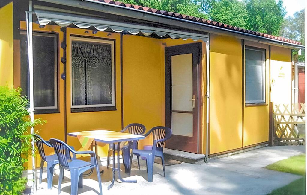 Denne enkle bungalow ligger på en separat, indhegnet grund i en stor ferielandsby lige ud til skov og kun 150 m fra stranden. Den har en stue (sovesofa, TV, radio), et soveværelse (dobbeltseng), et tekøkken med mikrobølgeovn, bruser/toilet og elektrisk varme. Der er også en møbleret terrasse, liggestole, en hundegård og en parkeringsplads. Der er en legeplads på stranden. Den samlede pris inkluderer: slutrengøring, vand og energiforbrug. Sengelinned og håndklæder kan medbringes eller lejes.