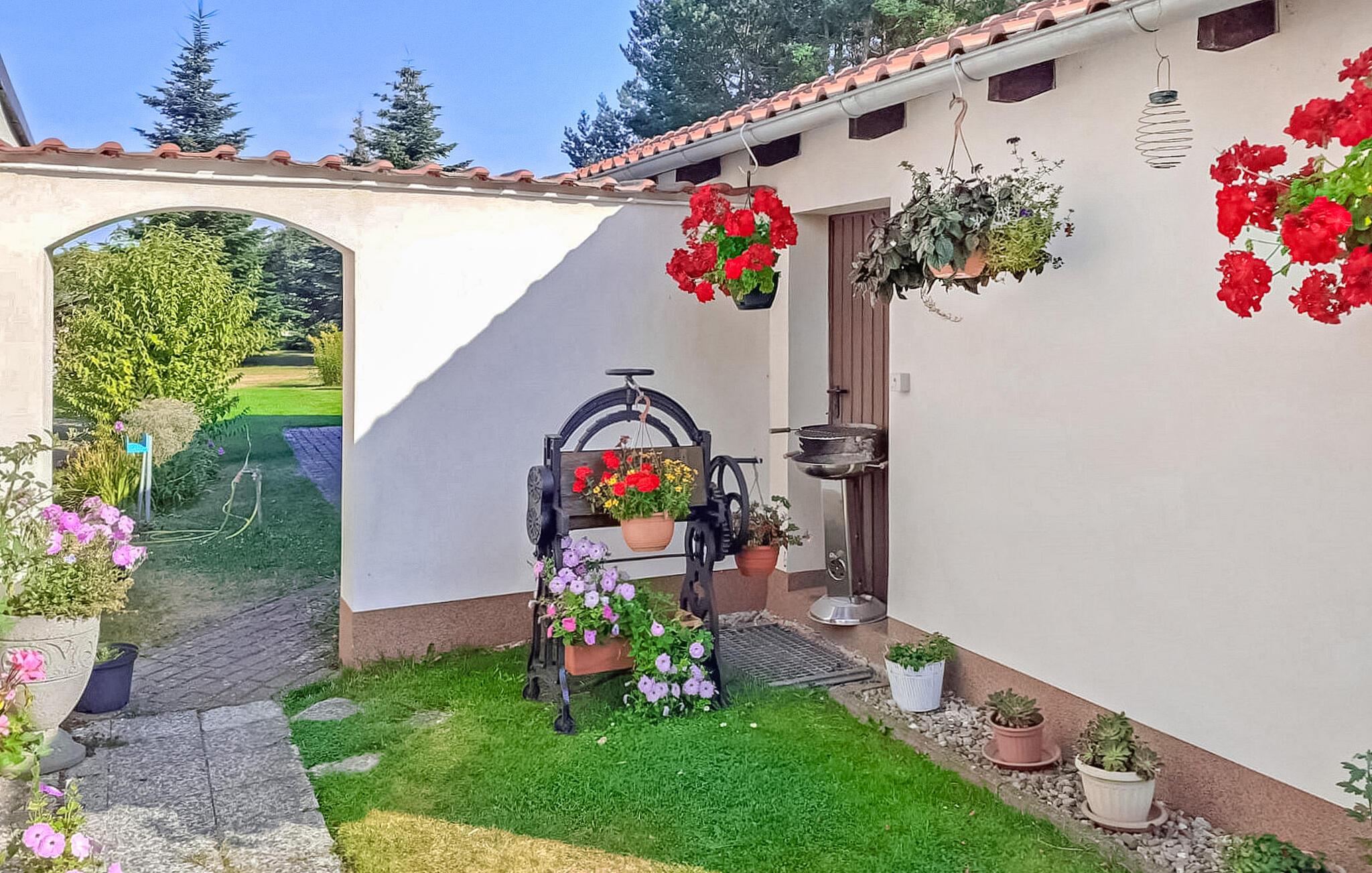 Sommerhuset er beliggende særskilt på ejerens 1300 kvm boligejendom rolig beliggenhed i udkanten af by og skov. Stranden ved Szczecin-lagunen ligger cirka 600 meter væk. Den er udstyret med: stue (polstrede møbler, TV, radio), åbent tekøkken med spisekammer (elkomfur, køleskab med fryser, mikroovn, spisebord, diverse køkkenmaskiner), soveværelse ovenpå (dobbeltseng, udtræksseng), bruser /WC, centralvarme . Der er møbleret terrasse eller opholdsområder på den velholdte og rolige haveejendom, grill, cykelrum og parkeringsplads. Den samlede pris inkluderer: sengelinned, håndklæder, vand- og energiforbrug, slutrengøring. Betales på stedet: turistskat. Kæledyr er ikke tilladt i denne ejendom. Bellin, en OT fra havnebyen Ueckermünde, er et lille feriested ved Szczecin-lagunen med butikker, en restaurant og 2 strande. Der er cirka 5 km til Ueckermünde med dens zoologiske have og havn. Herfra er udflugter med dampskib til Polen og øen Usedom mulige. Skovklædte omgivelser.