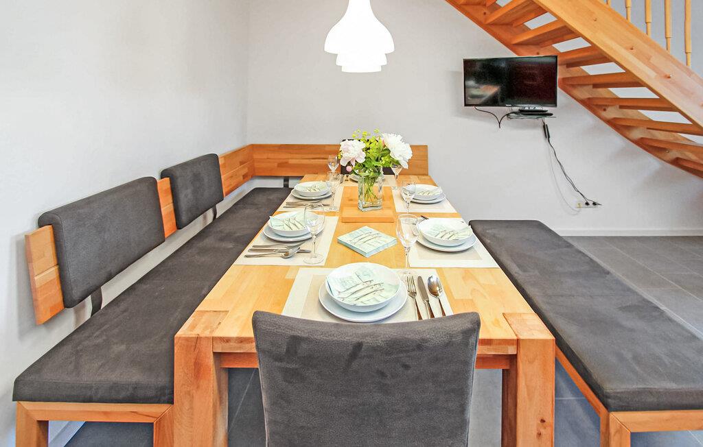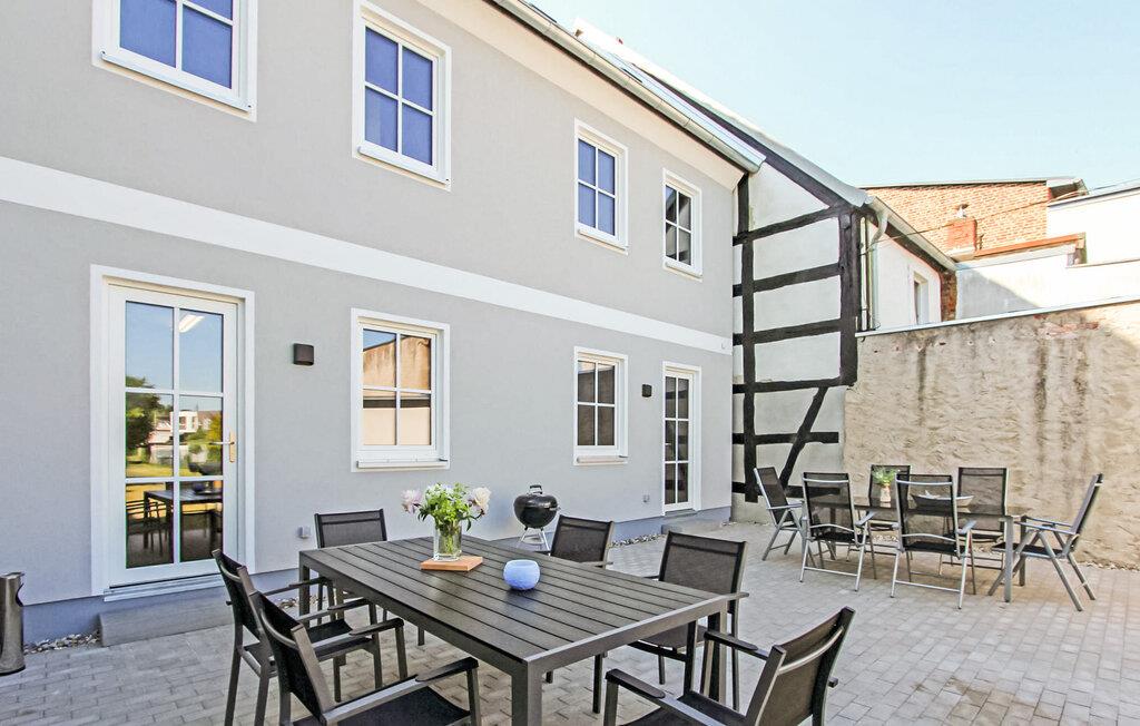 Det 100 kvm store feriehus, et dobbelthus nybygget i 2020 til maks. 6 personer, ligger på en 750 kvm fritidsejendom (delt med 2. dobbelthus) direkte i den gamle bydel i Ueckermünde. Havnen, restauranter, caféer, butikker, togstation og legeplads ligger inden for få minutters gang. Huset er bygget ved hjælp af de nyeste økologiske og åndbare byggemetoder ved hjælp af naturlige byggematerialer. Dette garanterer en naturlig og allergivenlig rumatmosfære og forhindrer opvarmning fra sollys. Interiøret, inklusive møblerne, er lavet af olieret bøgetræ. Udstyret er generelt af meget høj kvalitet og lever op til høje standarder. Huset strækker sig over tre boligplaner. I stueetagen er der stort køkken med komplet tekøkken (elkomfur med ovn, køleskab med fryser, opvaskemaskine, mikroovn, diverse køkkenmaskiner, spisebord, fladskærms-tv), gæstetoilet og bryggers med vaskemaskine og tørretumbler. På 1. sal er der stue (polstrede møbler, fladskærms-tv), 1 soveværelse (2 enkeltsenge) og badeværelse med bruser og badekar. På 2. sal er der yderligere 2 soveværelser med hver en dobbeltseng. En barneseng og en høj stol er gratis til rådighed for små børn (informer venligst ejeren, hvis du har brug for dem før ankomst). Internet (W-LAN) med magenta-tv er også tilgængelig. Udenfor er der møbleret terrasse, grill, liggestole, opbevaring af cykler og parkeringsplads. Den samlede pris inkluderer slutrengøring, sengelinned, håndklæder samt vand- og energiforbrug. Gæster på badebyen Ueckermünde er underlagt en turistskat. Den fremadstormende badeby Ueckermünde, den østligste tyske havneby ved Szczecin-lagunen, har omkring 12.000 indbyggere og har udviklet sig til en varmt anbefalet ferieadresse.Der er blandt andet en gammel by, der er værd at se med caféer, restauranter og indkøbsmuligheder, en smuk zoologisk have og en marina på Uecker Bådudlejning og passagerbådture til Polen og øen Usedom. Den velholdte strand med spa-park og promenade ved Szczecin-lagunen byder på restauranter, udlejning af strandstole og minigolf Takket være det veludviklede netværk af cykel- og vandrestier kan de skovklædte omgivelser nemt udforskes selv uden bil. Lystfiskere vil finde de bedste forhold, især ved Uecker-floden.