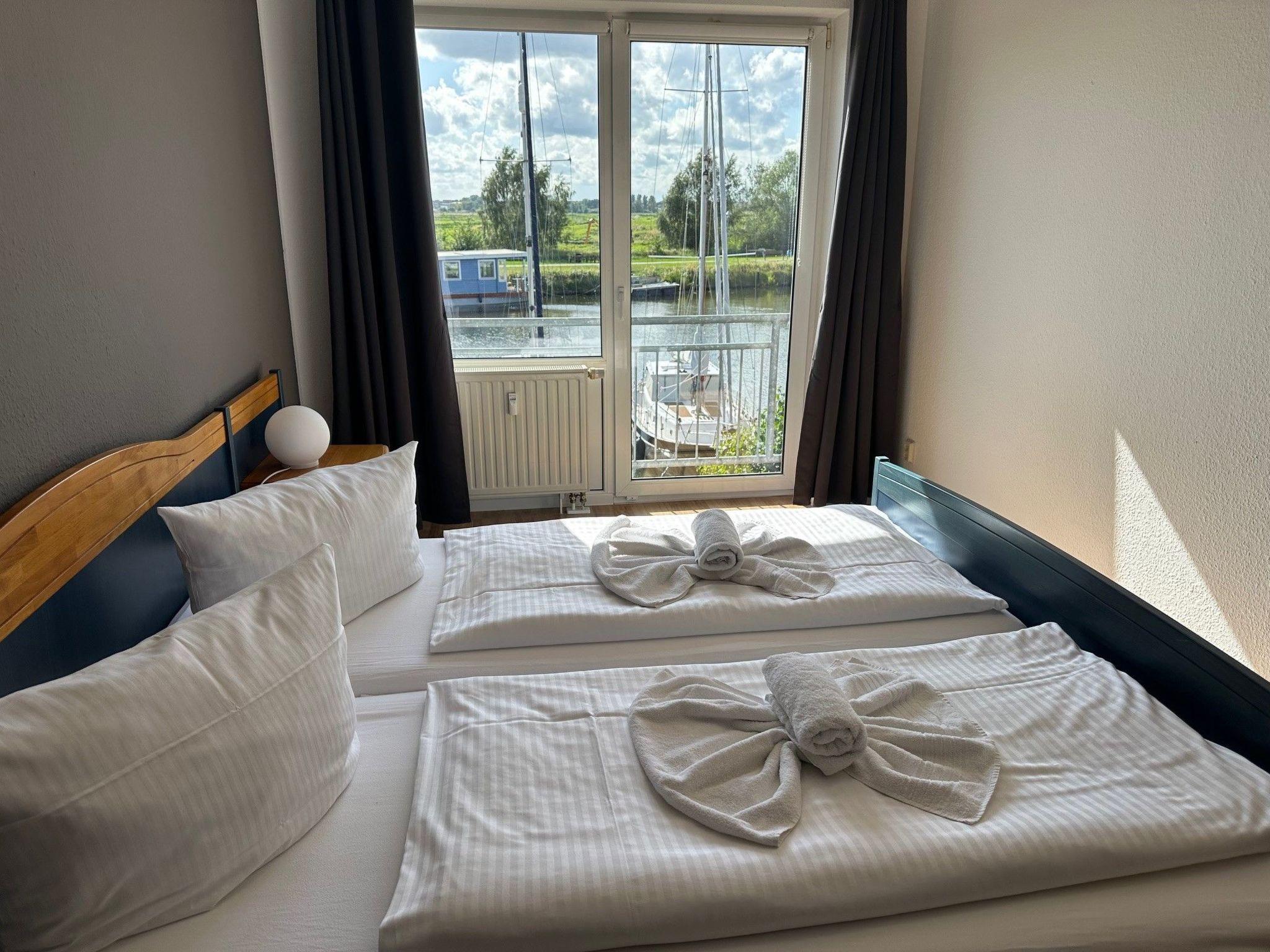 All rooms are south-facing, with a wonderful view of the marina and Ueckermünde. In addition to the bright living room with balcony, you will find a separate kitchen with dishwasher, a modern bathroom with shower and 2 bedrooms. Cable TV and internet connection are of course also available. We are also happy to provide a travel cot and a high chair for your little ones free of charge