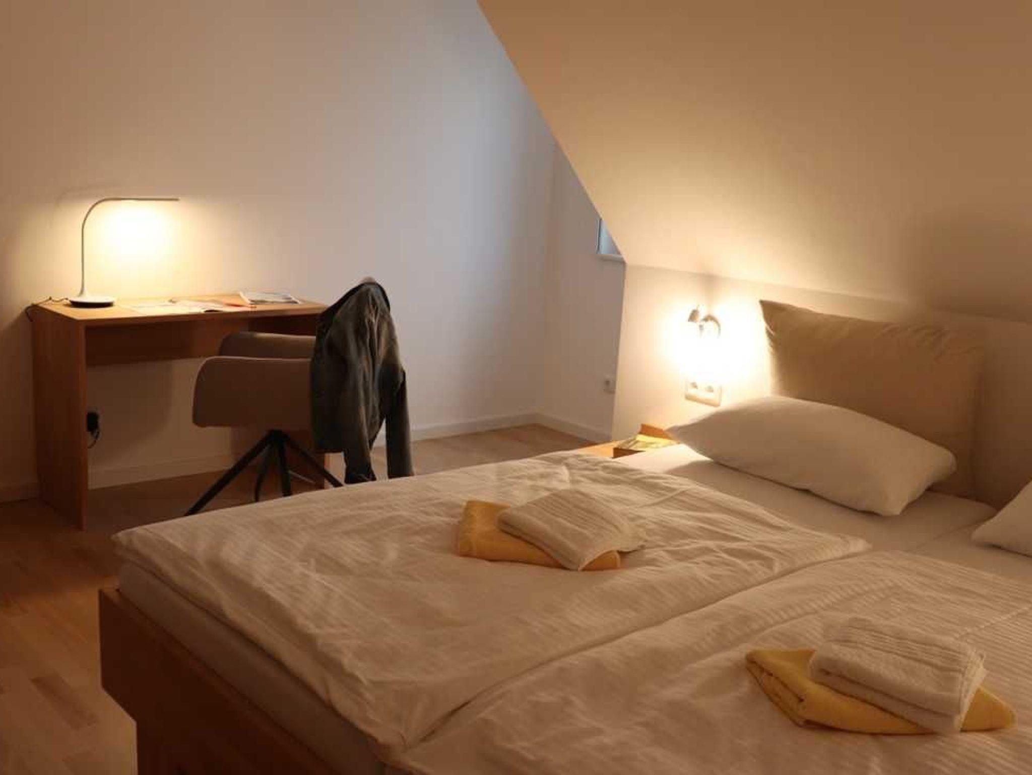 Im 2.OG befinden sich zwei geräumige Schlafzimmer, die über Doppelbetten verfügen, in einem ist darüber hinaus die Aufstellmöglichkeit für ein weiteres Kinderbett gegeben.