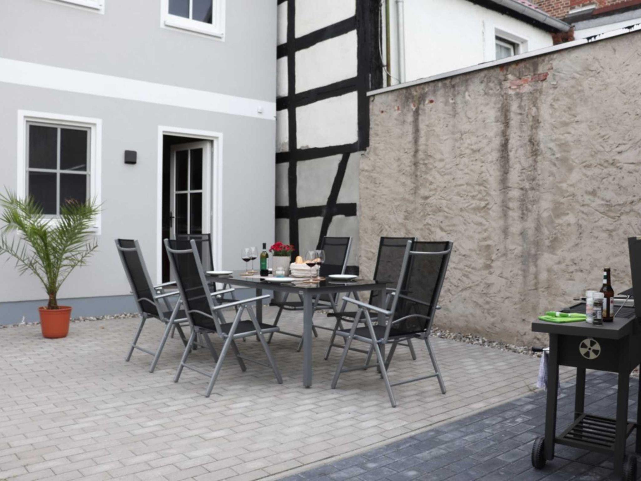 Die Einrichtung der Wohn- und Schlafräume ist mit Massivholzmöbeln gestaltet, die Fußböden im 1. u. 2. OG sind mit Parkett ausgelegt, im EG und im Bad sind die Fußböden gefliest. Das Haus ist mit einer Wärmepumpe ausgestattet, welche über die Fußböden heizen und an den warmen Tagen kühlen kann. Durch die diffusionsoffene Bauweise und die eingesetzten natürlichen Materialen erleben Sie ein neues Wohngefühl. Im Schuppen, der reichlich Platz für Fahrräder o.ä. bietet, steht für Sie ein Grill und ein Wäscheständer bereit. Gerne können Sie auch die Waschmaschine oder den elektrischen Wäschetrockner nutzen.