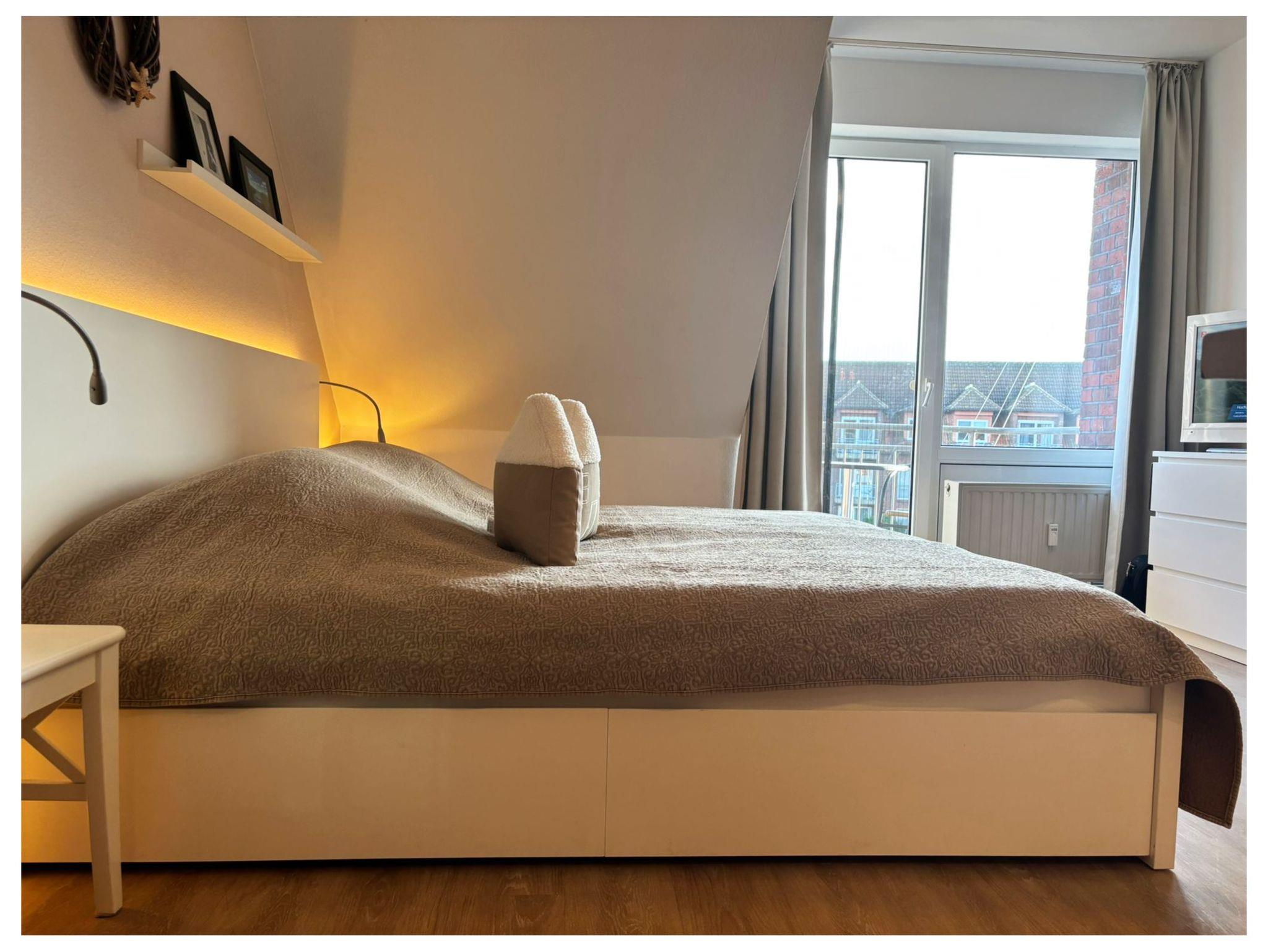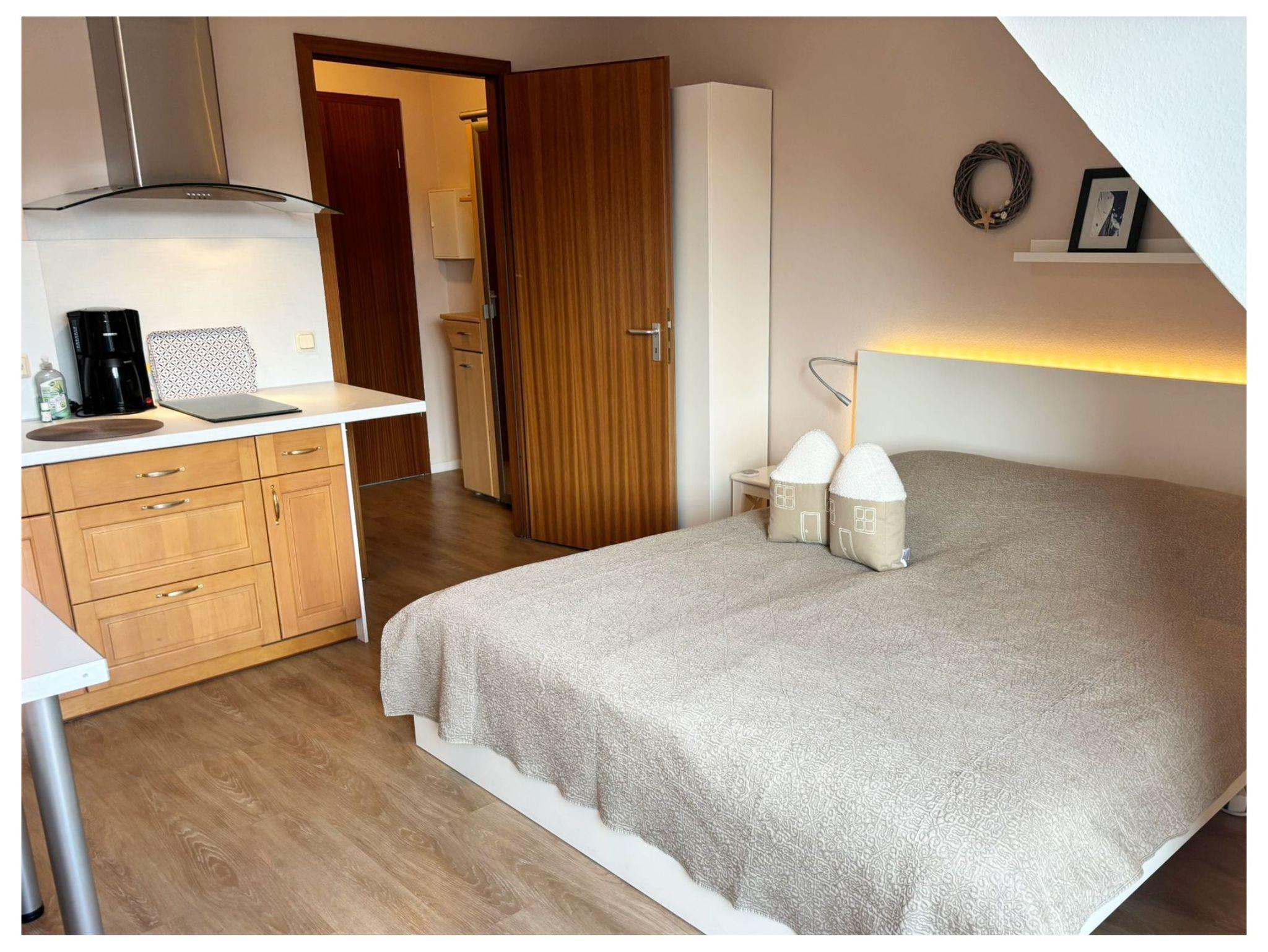 Das Apartment verfügt über einen Balkon, ein Wohn- und Schlafzimmer mit Küchenzeile und ein Bad mit Dusche und WC. Belegung 2+1 (bis 6 Jahre im Bett der Eltern). Die Küche ist mit zwei Kochfeldern und einer Mikrowelle ausgestattet. Das Apartment verfügt über Kabel-TV, Radio, Fön, Fliegengitter u.v.m. Ein Pkw-Stellplatz ist für Sie kostenfrei.