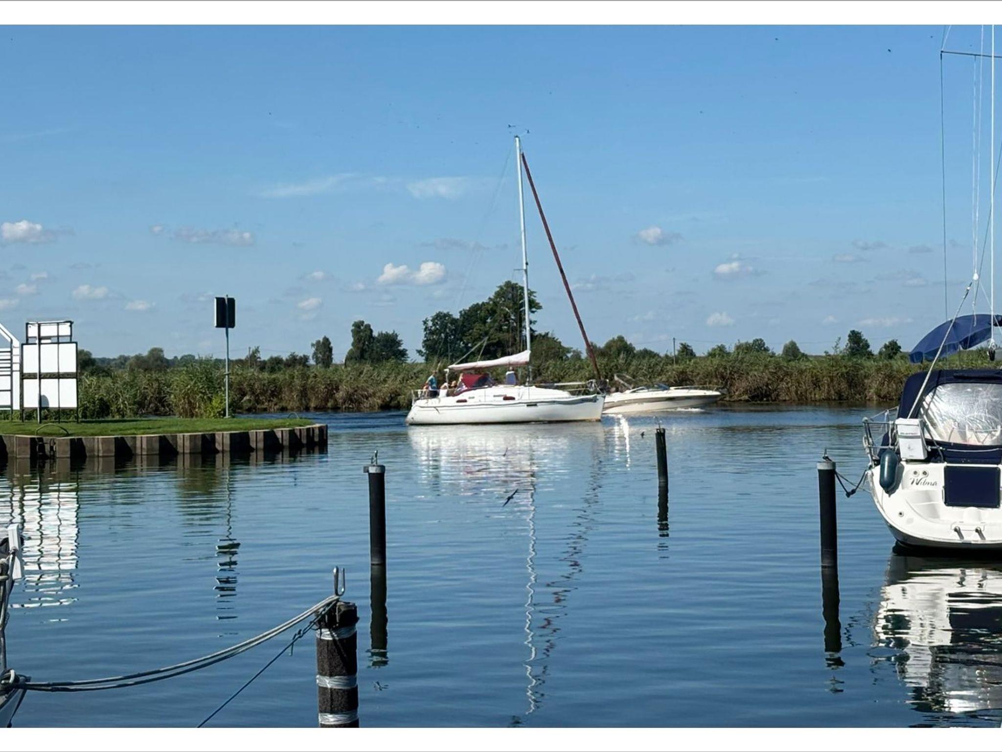 Direkt im Yachthafen: Fahrrad-, Boots- und E-Scooter-Verleih, wunderschön gelegene Grillplätze, Volleyballfeld, Basketballkorb und ein kleines Rasenfußballfeld, Außenschachspielfläche, Frühstücksrestaurant im Hafengebäude eine Minute entfernt, Brötchenverkauf eine Minute entfernt, Angelmöglichkeit in der Uecker, separierter Spielplatz, Fahrradunterstellmöglichkeit