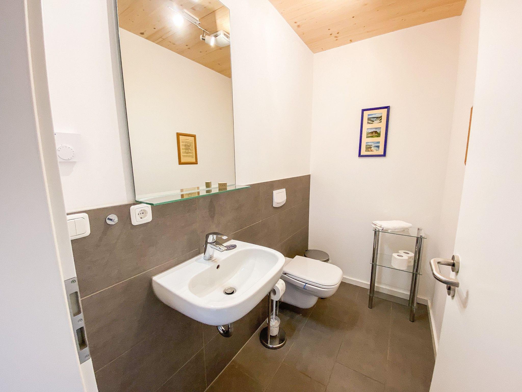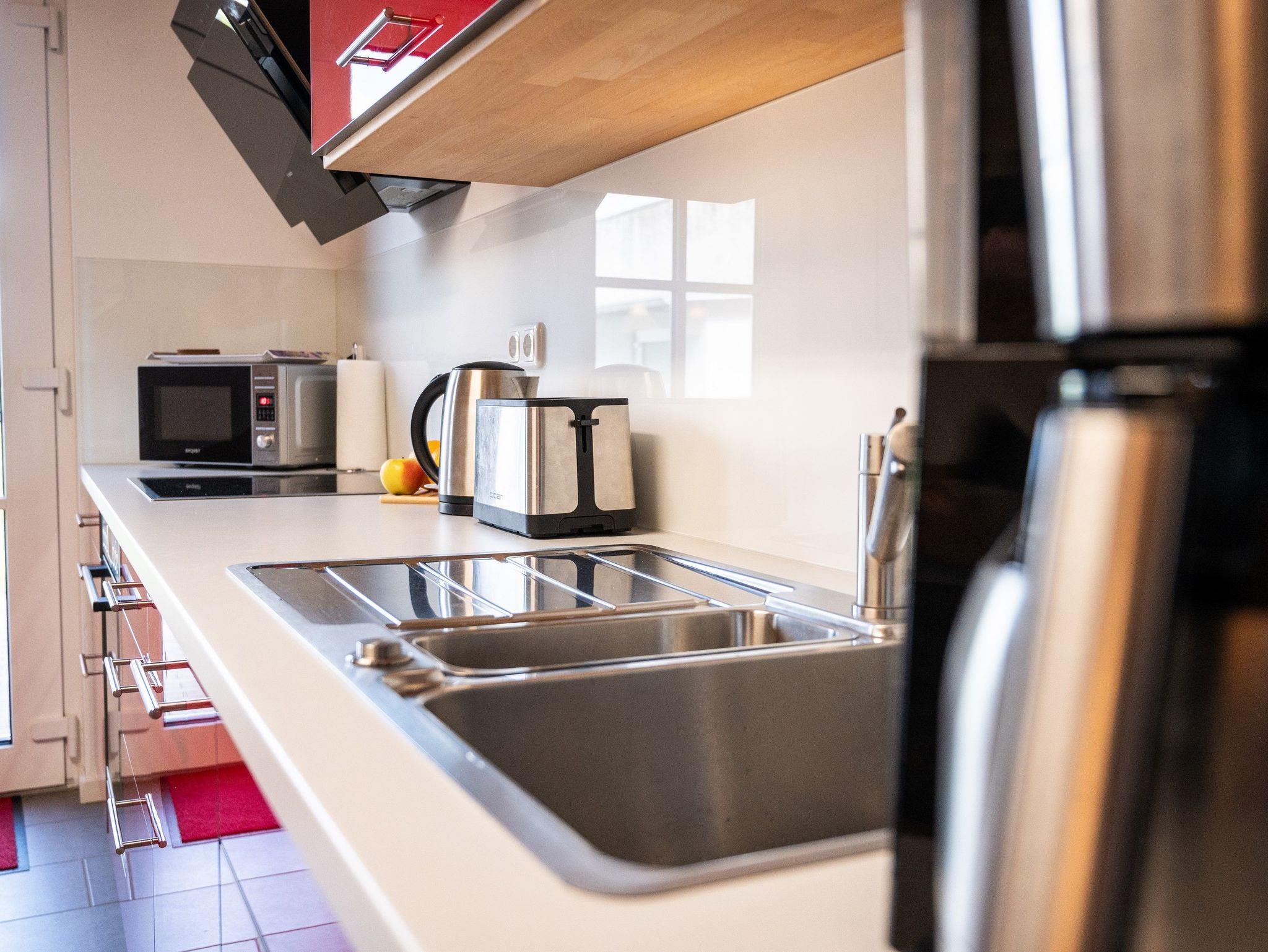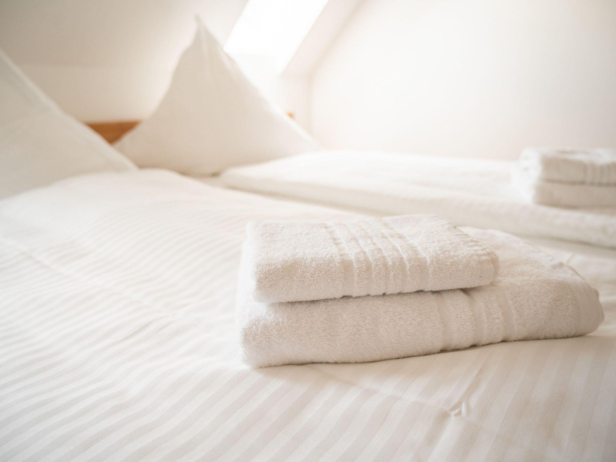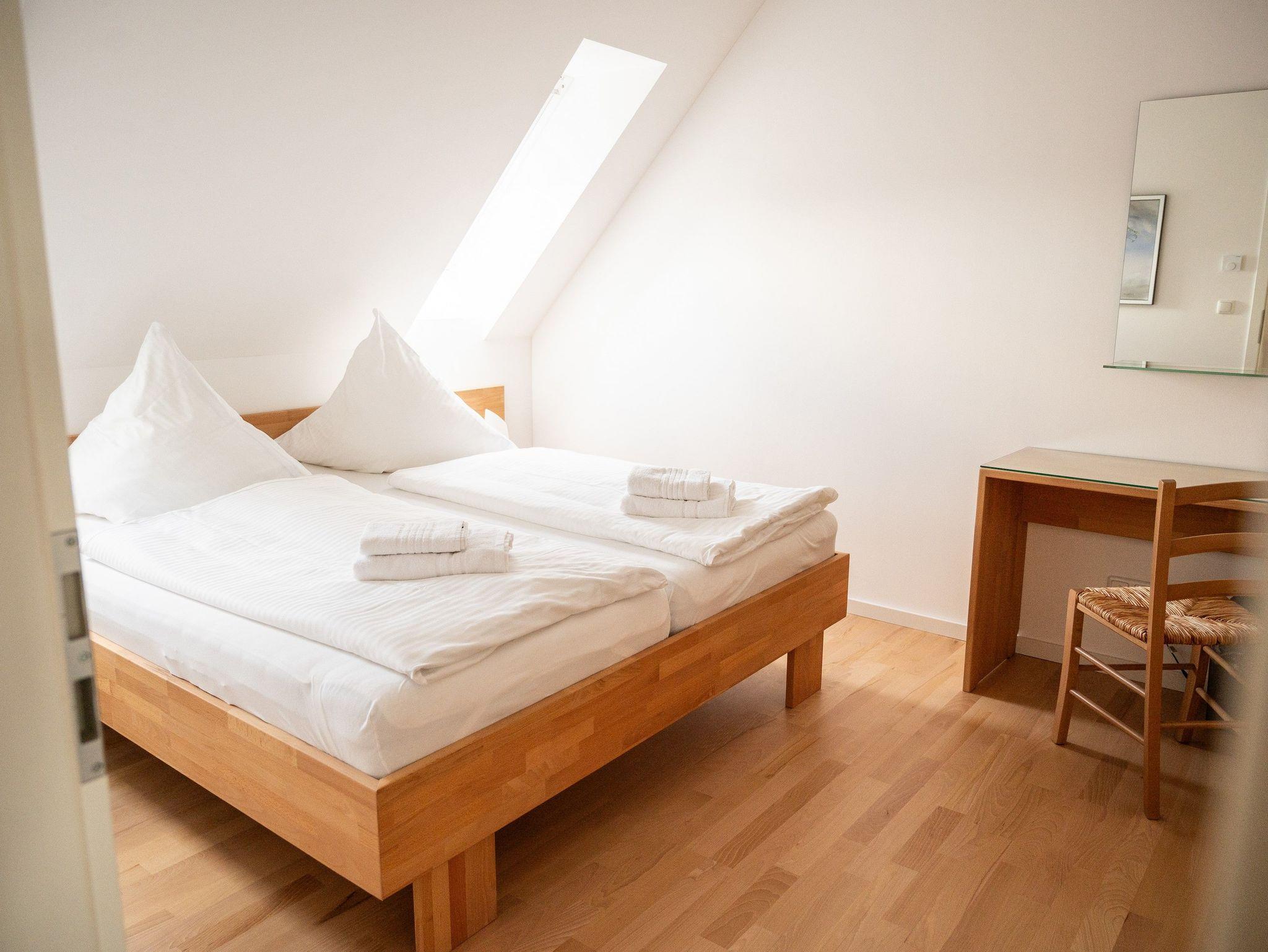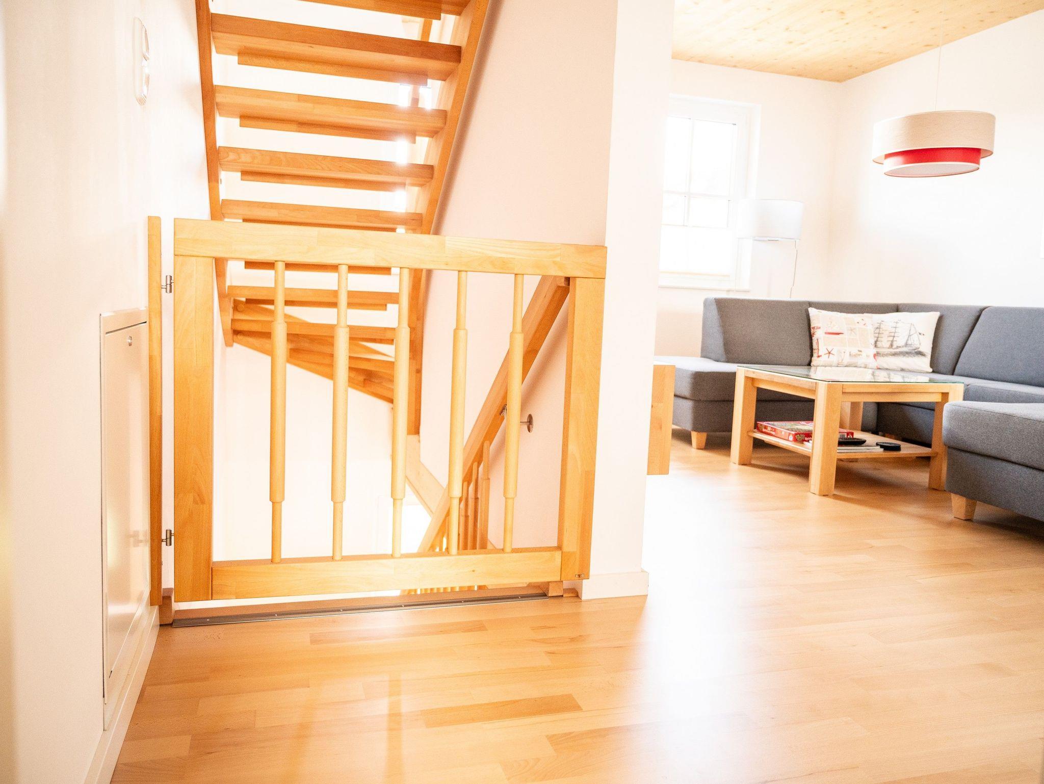 Im 1. OG befinden sich der Wohnraum (Polstermöbel, Flachbild-TV), 1 Schlafraum (2 Einzelbetten) und das Bad mit Dusche und Wanne. Im 2. OG gibt es 2 weitere Schlafräume mit je einem Doppelbett. Diese Schlafräume stehen erst ab einer Belegung von mindestens 3 Personen zur Verfügung. Für Kleinkinder stehen ein Kinderbett und ein Kinderhochstuhl kostenfrei bereit (bitte den Bedarf vor Anreise beim Eigentümer anzeigen). Internet (WLAN) und Magenta-TV sind ebenfalls vorhanden.