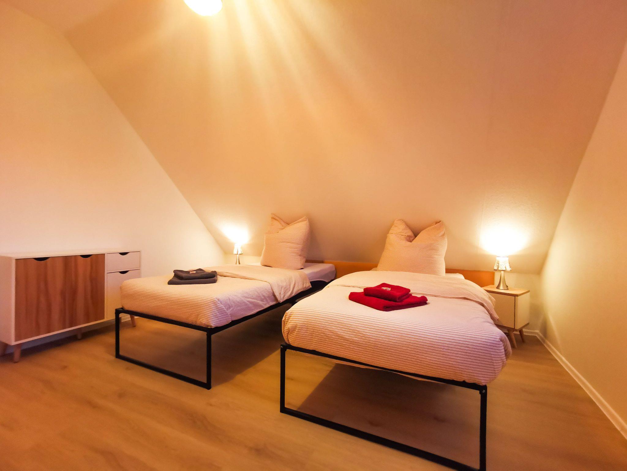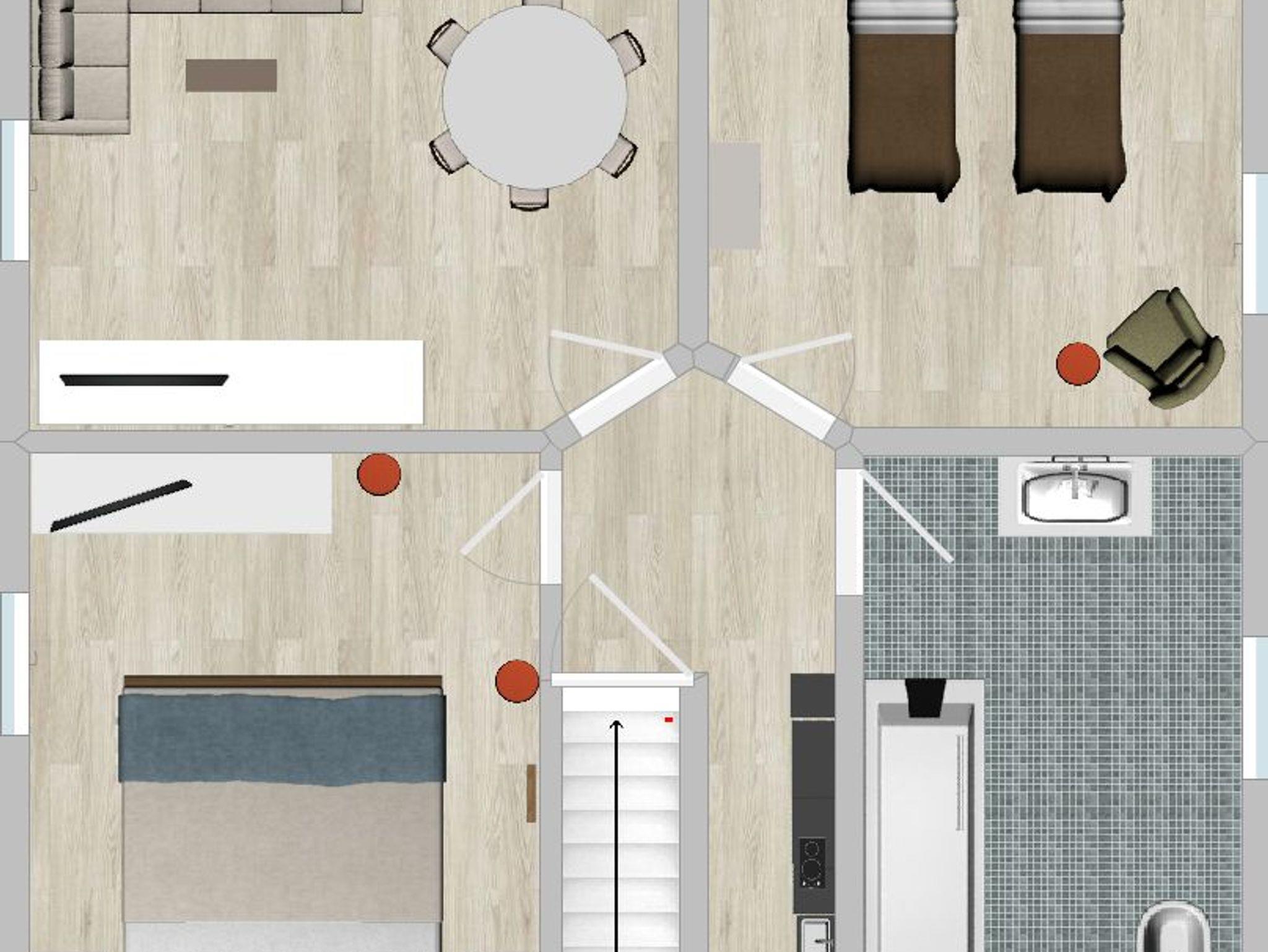 Unsere moderne und neu ausgestattete Wohnung bietet im 1. Obergeschoss auf 60 qm für bis zu sechs Personen Platz an, also ideal für Ihren Familienurlaub.