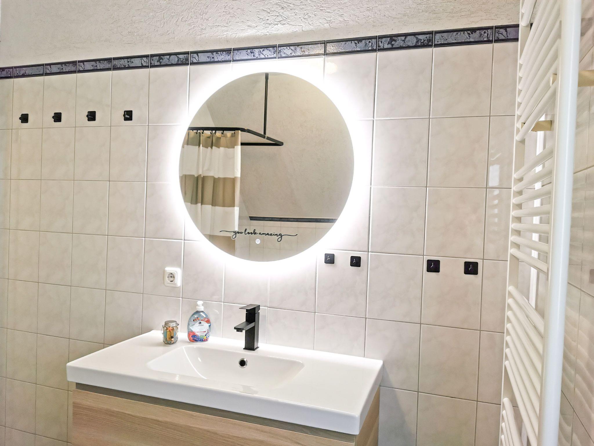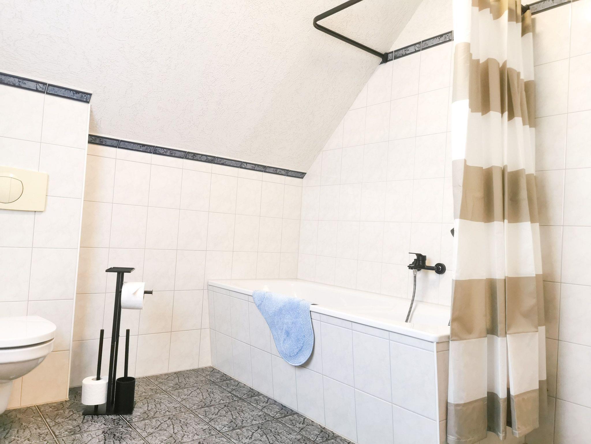 Bad: Das Bad ist mit einer Badewanne und einem Duschvorhang ausgestattet, das ebenso mit Liebe eingerichtet wurde.