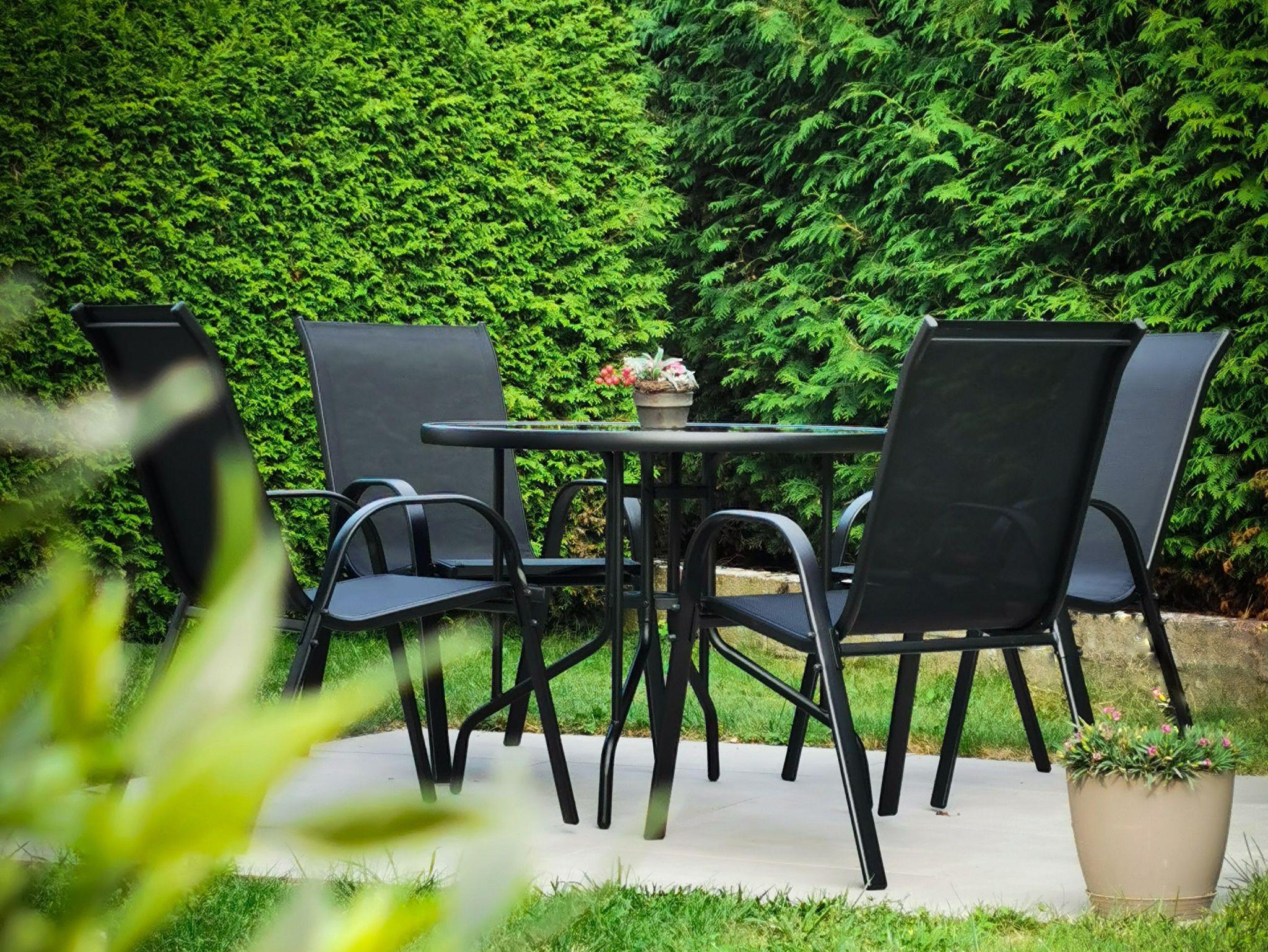 Außen: Privatparkplatz (Carport), 2 Pkw-Stellplätze insgesamt, Garten vorhanden, Terrasse mit Sitzgruppe und Grill.