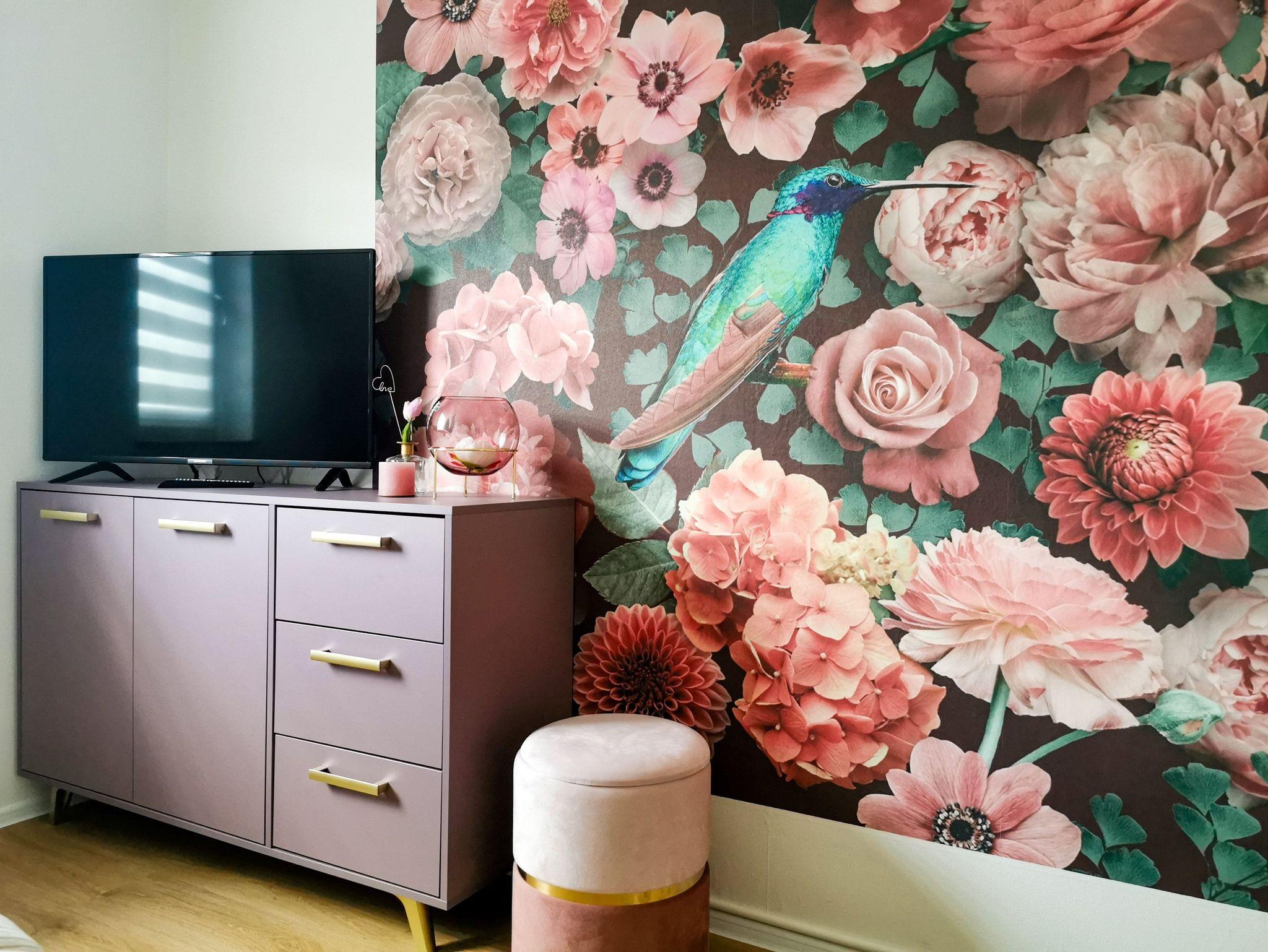 Der gesamte Fußbodenbereich ist mit einem Vinyl ausgestattet, das Badezimmer ist gefließt. Auch die Wände sind bis ins kleinste Detail modern tapeziert.