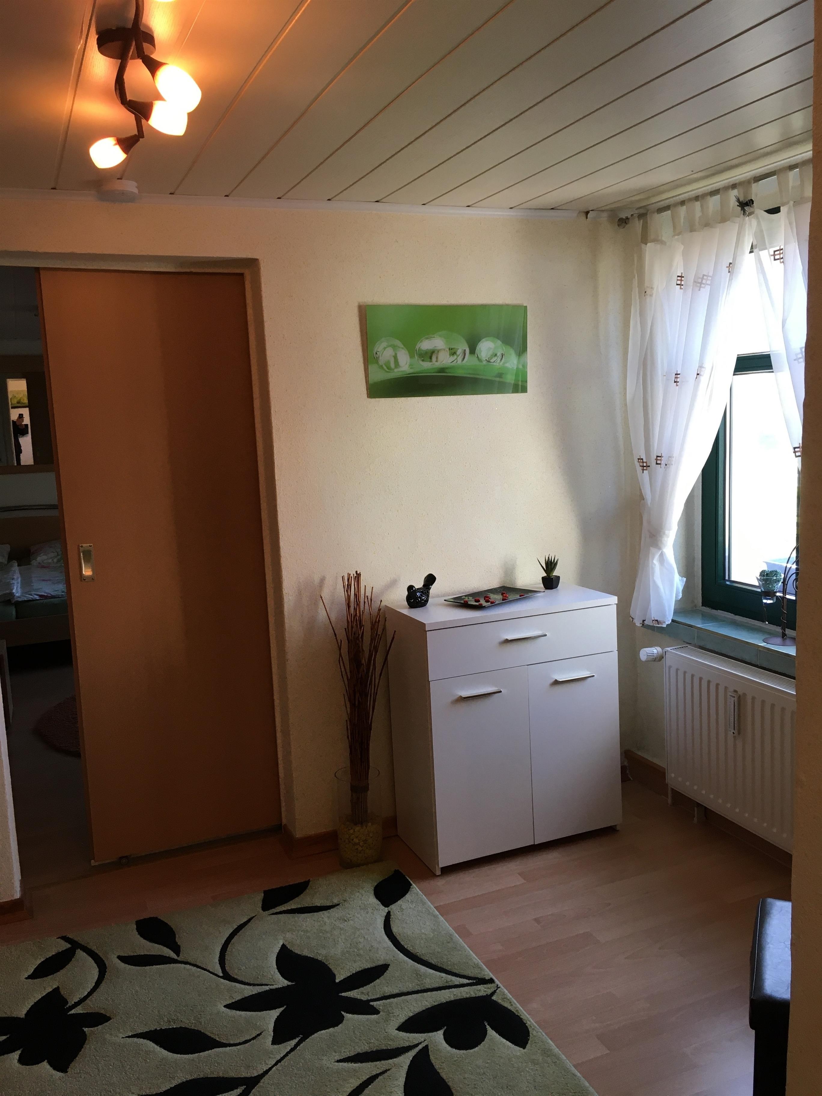 Die 40qm große Wohnung ist für 2 Personen ausgestattet und liegt im Erdgeschoss unseres Wohnhauses, ca. 500 vom Strand entfernt.Der offene Wohn- Küchenbereich schafft eine angenehme Atmosphäre und ist liebevoll eingerichtet.Das Schlafzimmer bietet ausreichend Platz,hat auch einen TV und ist verdunkelbar.Der Aussenbereich im weitläufigen Garten bietet Sitzmöbel, Tisch und Kugelgrill.Ihr Parkplatz befindet sich direkt vor dem Haus.