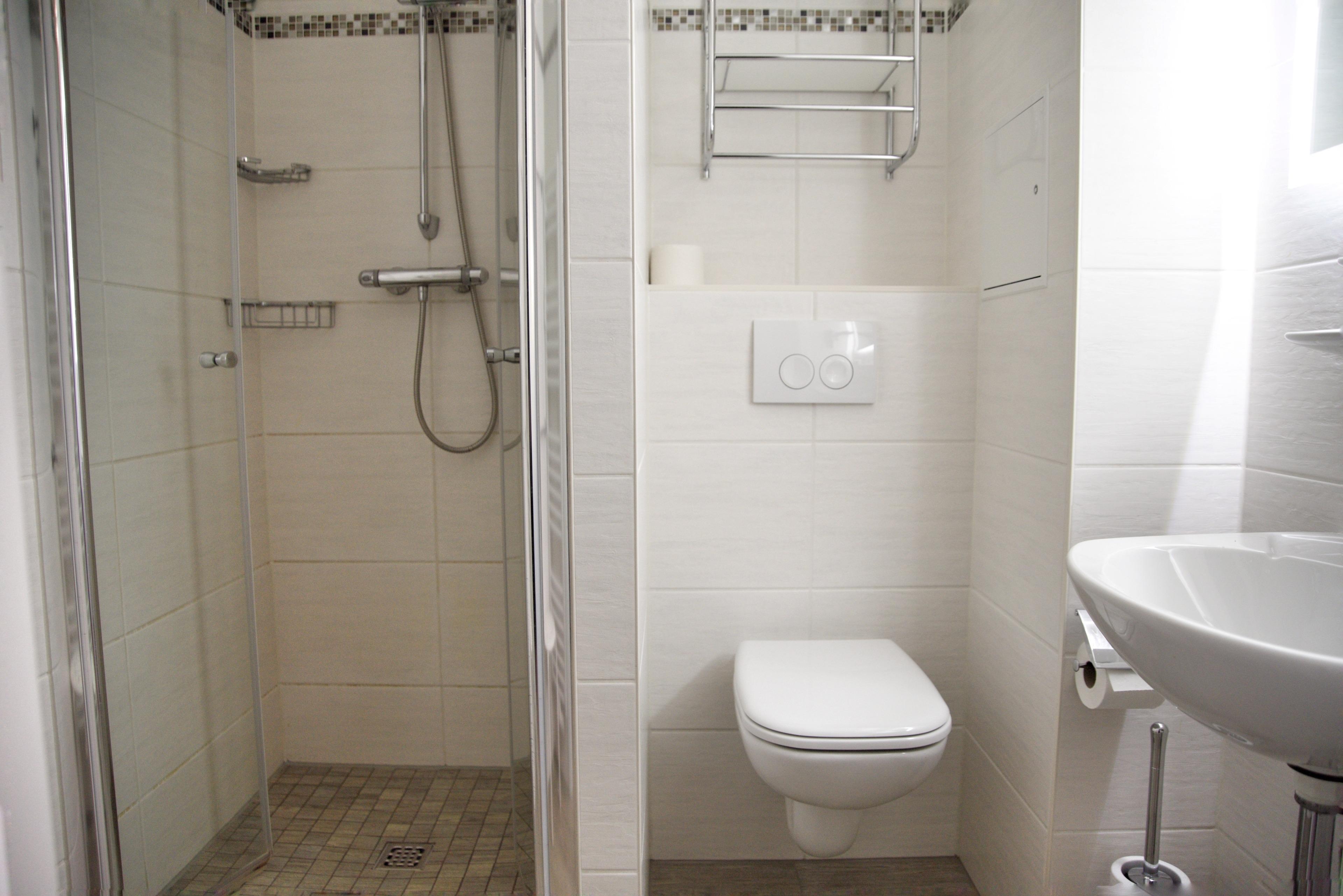 Ihre hochwertige Sterneküche ist für Sie voll ausgestattet. Bestandteile sind unter anderem ein Cerankochfeld, ein Backofen, eine Kaffeemaschine, eine Mikrowelle, viel Geschirr, ein Geschirrspüler, eine große Kühl- und Gefrierkombination und weiteres Equipment. Das Badezimmer hält eine Dusche mit Duschkabine, Ablageflächen und einen Fön für Sie bereit. Im Flur finden Sie eine Garderobe, einen großen Spiegel und Reinigungsgeräte vor.