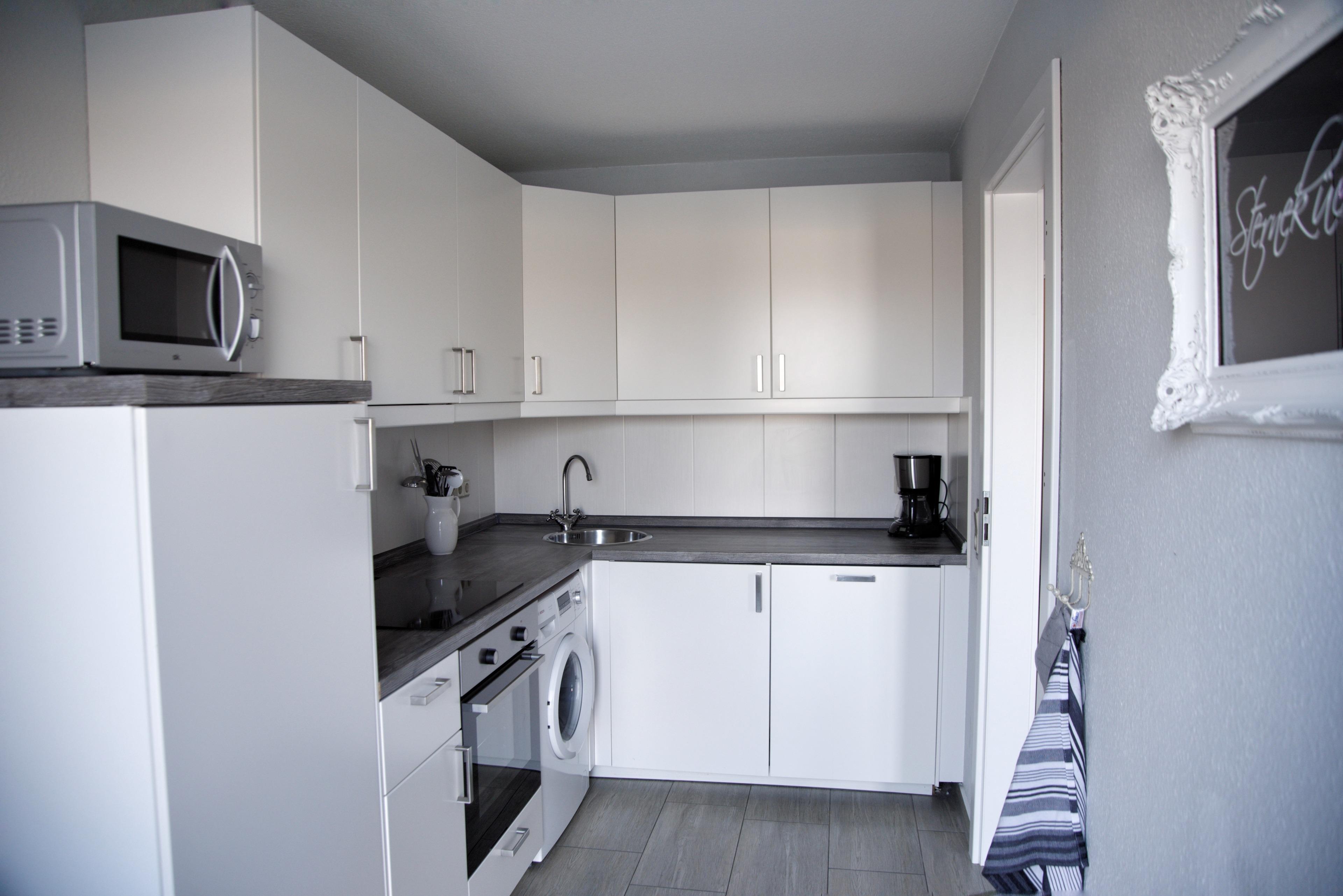 Ihr Wohnzimmer verfügt über einen Esstisch mit sechs Stühlen, ein ausziehbares Klappsofa mit einem Schlafplatz für zwei Personen und einen Sessel. Multimedial steht Ihnen ein Flachbildfernseher zur Verfügung. Ihre Ferienwohnung hat einen Kabelanschluss. Auch einige Gesellschaftsspiele warten hier schon auf Sie. In Ihrem großen Schlafzimmer befindet sich ein Doppelbett mit höhenverstellbaren Lattenrosten. Nachtische, Leselampen und Garderoben möchten hier von Ihnen genutzt werden. Der große Schrank wird Ihnen gute Dienste leisten. Im kleinen Schlafzimmer sind zwei Einzelbetten für Sie vorhanden. Auch hier befinden sich weitere Ablagen und ein Kleiderschrank. Ihre große Sterneküche ist für Sie voll ausgestattet. Bestandteile sind unter anderem ein Cerankochfeld mit Backofen, Kaffeemaschine, Mikrowelle, viel Geschirr, ein Geschirrspüler, eine große Kühl- und Gefrierkombination und weiteres Equipment. Ein besonderes Highlight ist hier der kleine Bistrotisch am Fenster. Dort können Sie bei einer Tasse Kaffee den Möwen und Fischreihern im Hafenbecken zuschauen. Das Badezimmer hält eine Badewanne mit Duschecke für Sie vor. Ablageflächen und einen Fön warten hier schon auf Sie. All Ihre Mitbringsel finden hier ausreichend Platz. Der Flur ist mit einer Garderobe, einem Spiegel und Abstellmöglichkeiten für Reinigungsgeräte ausgestattet. Das Appartement Anker liegt im Erdgeschoß des Hauses Störtebeker, im Eingang 1. In unmittelbarer Nähe dieses Appartements befinden sich weitere Ferienappartements unserer Gesellschaft. Eine gemeinsame Anmietung ist hier sehr gut möglich.
