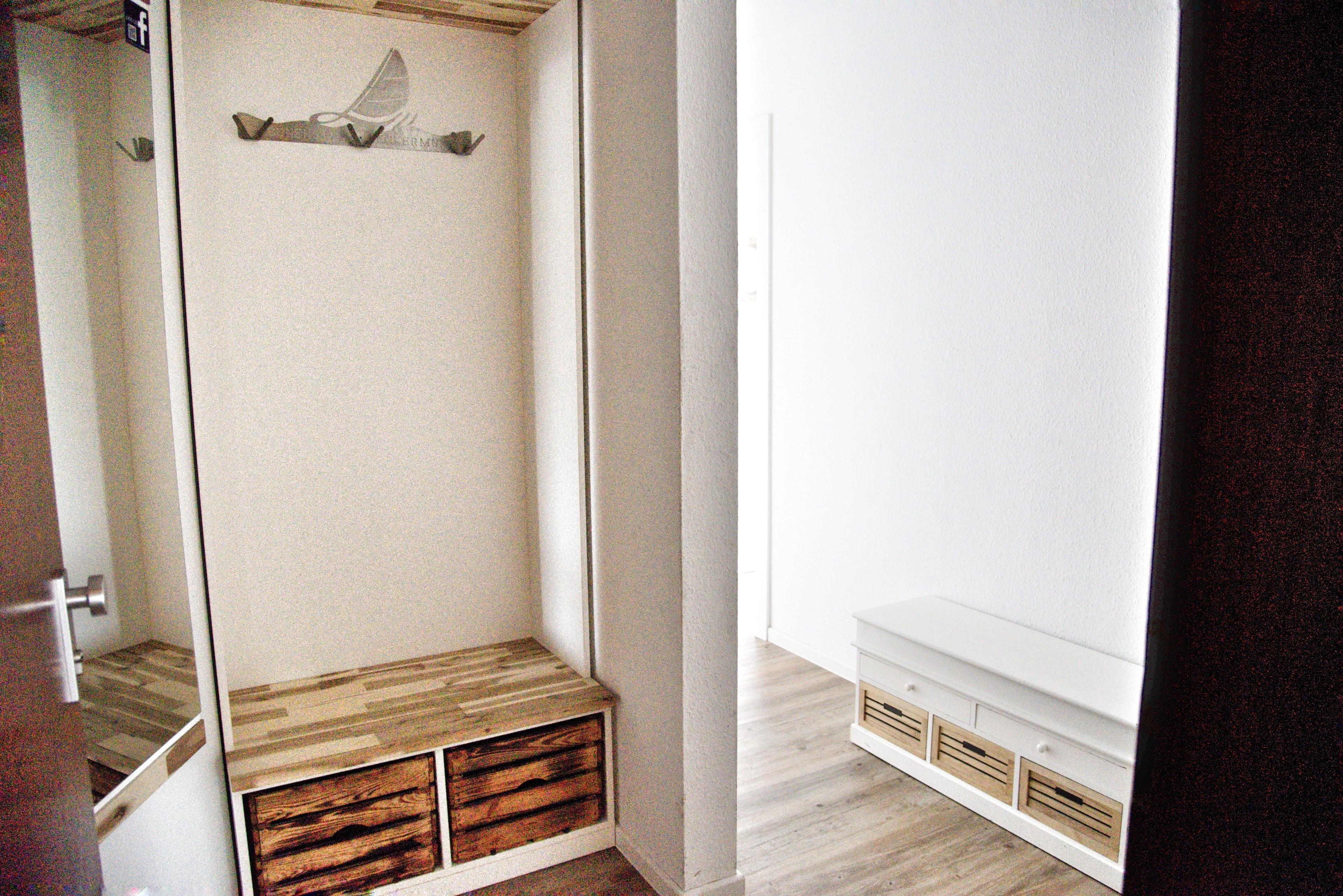 Die moderne Küche verfügt über eine komplett ausgestattete Küchenzeile, mit Cerankochfeld, Backofen, Geschirrspüler, Mikrowelle, viel Geschirr, sowie einem Kühlschrank mit kleinem Gefrierfach. Das neu geflieste Badezimmer hat eine Dusche mit ausreichend Ablageflächen. Ihre mitgebrachten Utensilien werden Sie hier gut verstauen können. Eine Garderobe im Flur ziert Ihren Eingangsbereich.