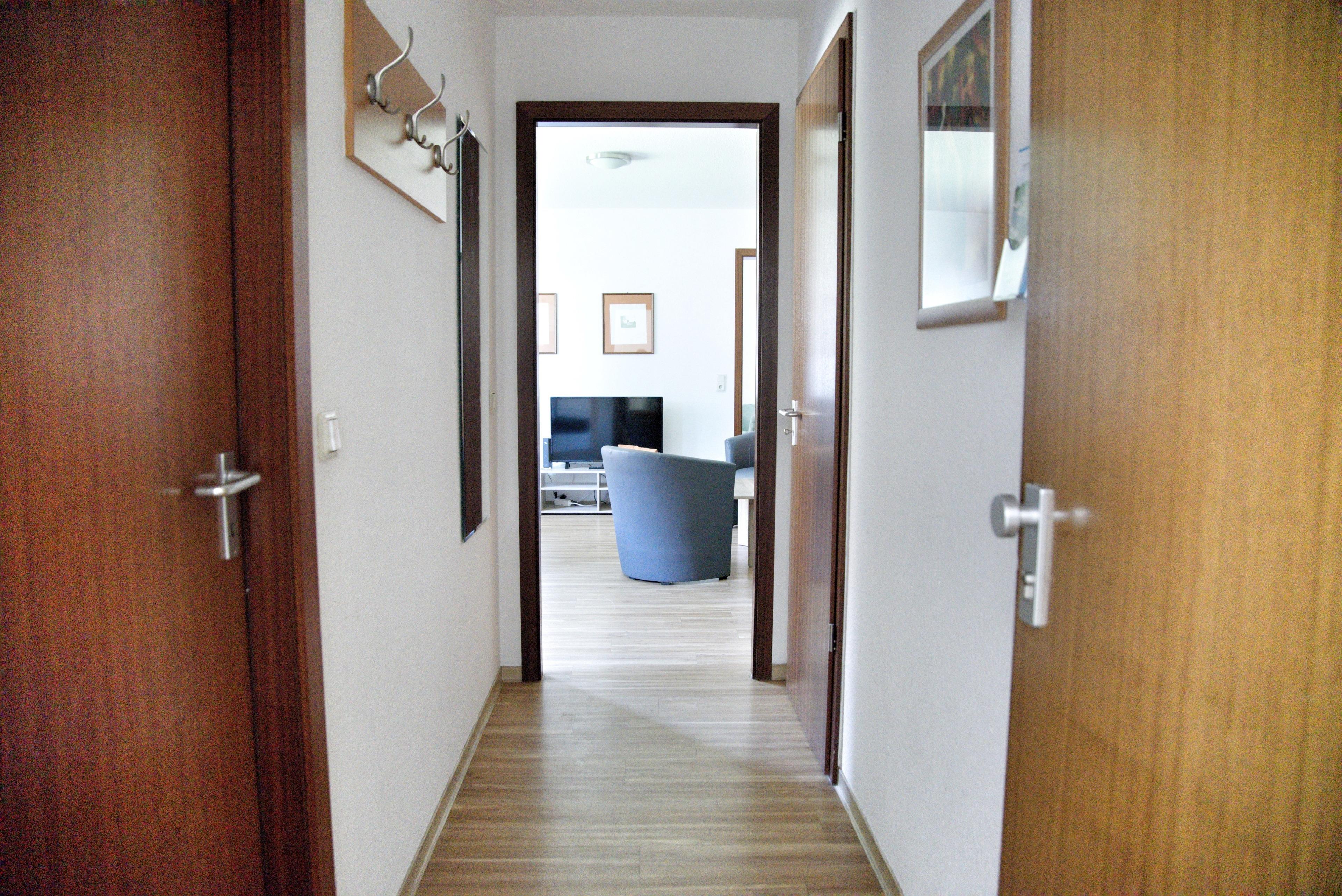 Ihr Wohnzimmer verfügt über einen Esstisch mit vier Stühlen, ein ausziehbares Schlafsofa mit einem Schlafplatz für zwei Personen und zwei Korbsessel. Die Wohnküche ist zum Wohnzimmer hin offen, was den Raum weitläufiger erscheinen lässt. Multimedial steht Ihnen hier ein Flachbildfernseher mit Kabel-TV zur Verfügung. Auch einige Gesellschaftsspiele dürfen natürlich nicht im Bestand fehlen. Im Schlafzimmer befinden sich ein komfortables Doppelbett sowie ein großzügig bemessener Kleiderschrank. Hier können Sie Ihre Koffer bequem auspacken. Die Küchenzeile ist gut ausgestattet. Bestandteile sind unter anderem ein Kochfeld, eine Kaffeemaschine, eine Mikrowelle, ein Backofen, viel Geschirr sowie einen Kühlschrank mit Gefrierfach. Hier können Sie sich kulinarisch voll entfalten. Das Badezimmer hat eine Dusche mit Duschkabine und Ablageflächen. Ihre mitgebrachten Utensilien werden Sie hier gut verstauen können. Ihr Flur verfügt über eine Garderobe und einen großen Spiegel. Das Appartement Yarn liegt im Erdgeschoß des Hauses Störtebeker, im Eingang 3. In unmittelbarer Nähe dieses Appartements befinden sich weitere Ferienappartements unserer Gesellschaft. Eine gemeinsame Anmietung ist hier sehr gut möglich.