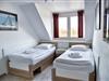 In Ihrem großen Schlafzimmer befindet sich ein Doppelbett mit höhenverstellbaren Lattenrosten. Nachtische, Leselampen und Garderoben möchten hier von Ihnen genutzt werden. Der große Schrank wird Ihnen gute Dienste leisten. Im kleinen Schlafzimmer sind zwei Einzelbetten für Sie vorhanden. Die beiden Kleiderschränke, die Garderoben und die Nachttische mit den dazugehörigen Leselampen werden Ihnen auch hier genügend Stauraum für Ihr Gepäck bieten.