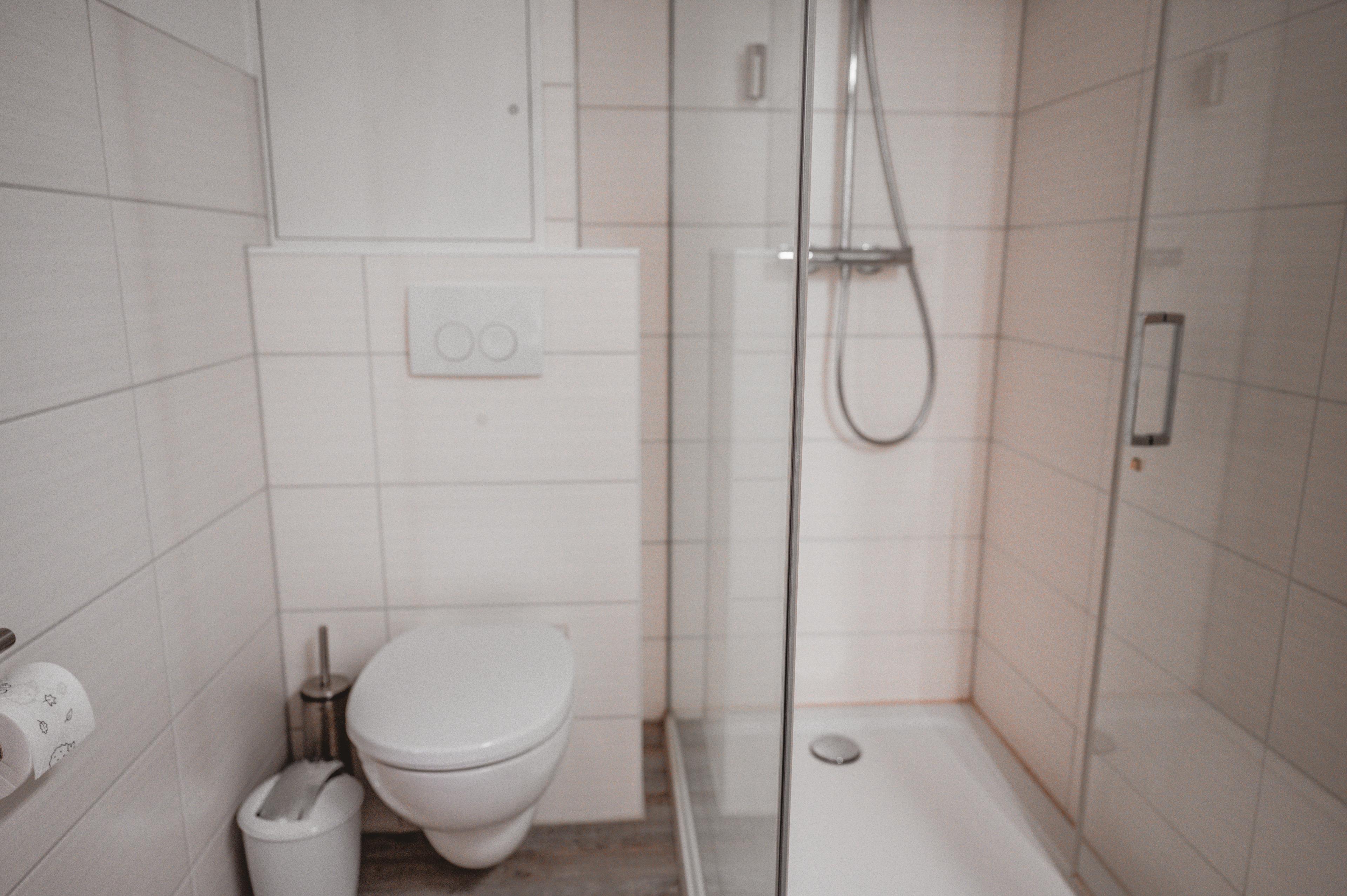 Die moderne Küche verfügt über eine komplett ausgestattete Küchenzeile, mit Cerankochfeld, Backofen, Geschirrspüler, Mikrowelle, viel Geschirr, sowie einem Kühlschrank mit kleinem Gefrierfach. Das neu geflieste Badezimmer hat eine Dusche mit ausreichend Ablageflächen. Ihre mitgebrachten Utensilien werden Sie hier gut verstauen können. Eine Garderobe im Flur ziert Ihren Eingangsbereich.