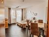 Ihr Wohnzimmer verfügt über einen Esstisch mit sechs Stühlen, ein ausziehbares Klappsofa mit einem Schlafplatz für zwei Personen und einen Sessel. Multimedial stehen Ihnen ein großer Flachbildfernseher zur Verfügung. Die Ferienwohnung hat auch einen Kabelanschluss.