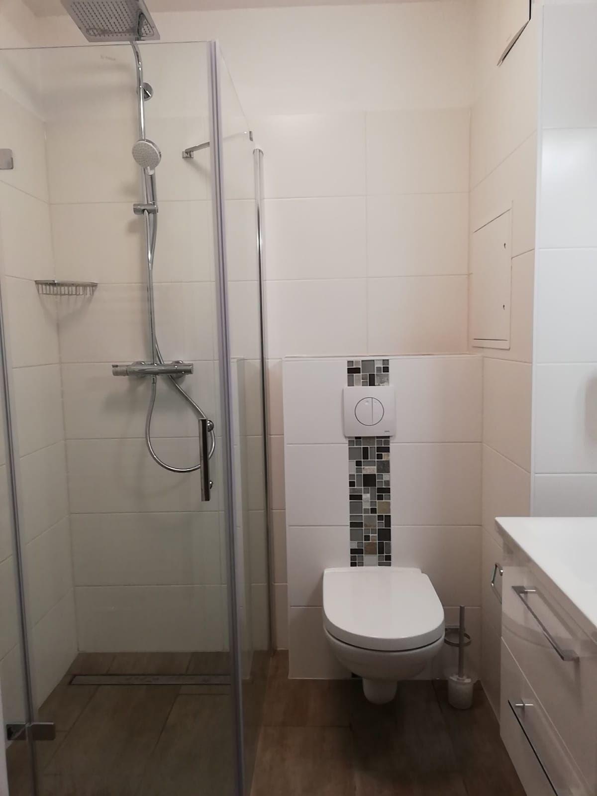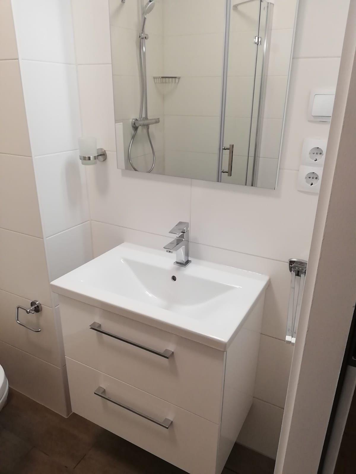 Das Bad wurde neu gestaltet. Den Gästen stehen kostenfrei ein Kinderreisebett und Kinderhochstuhl zur Verfügung.
