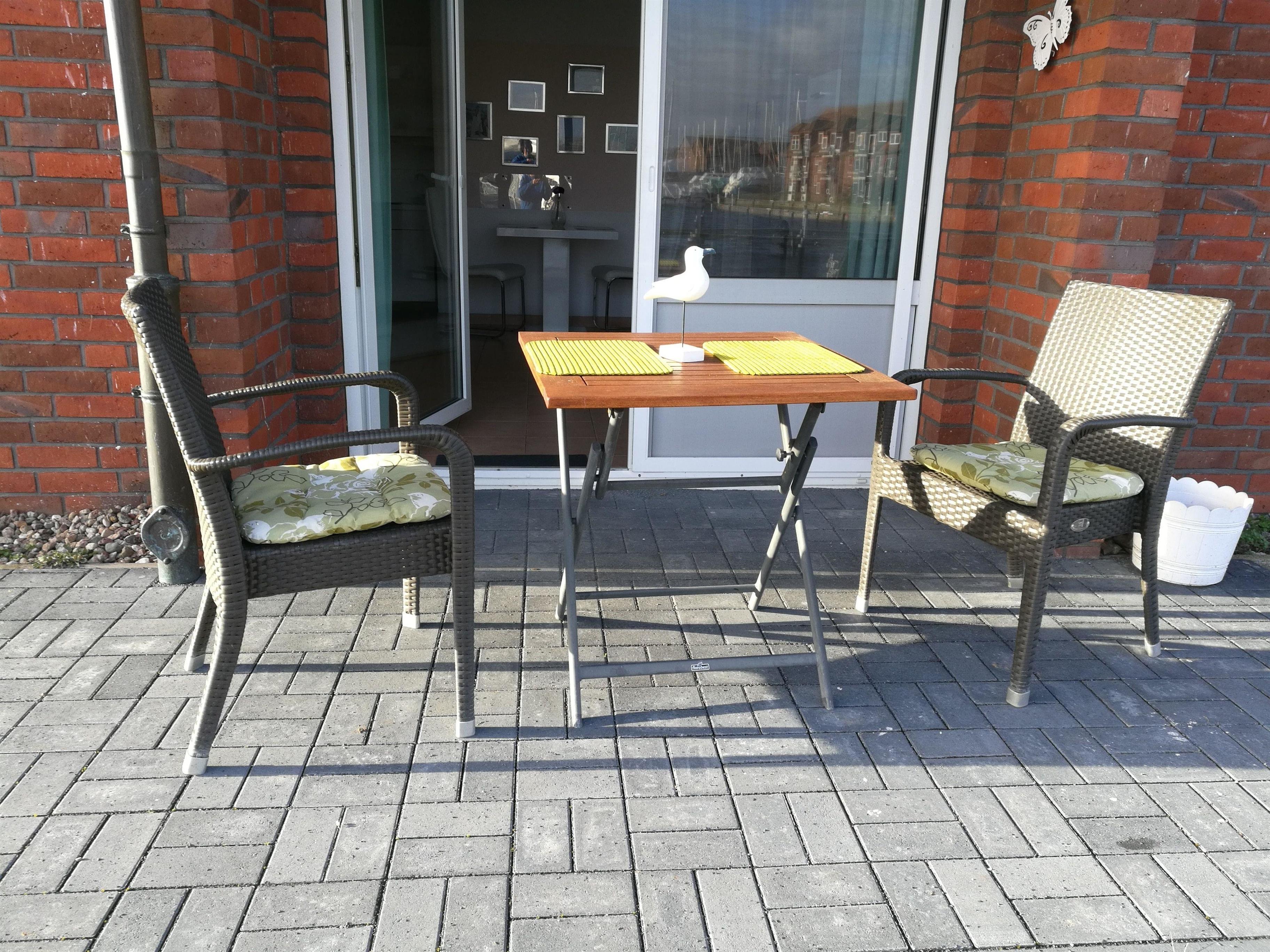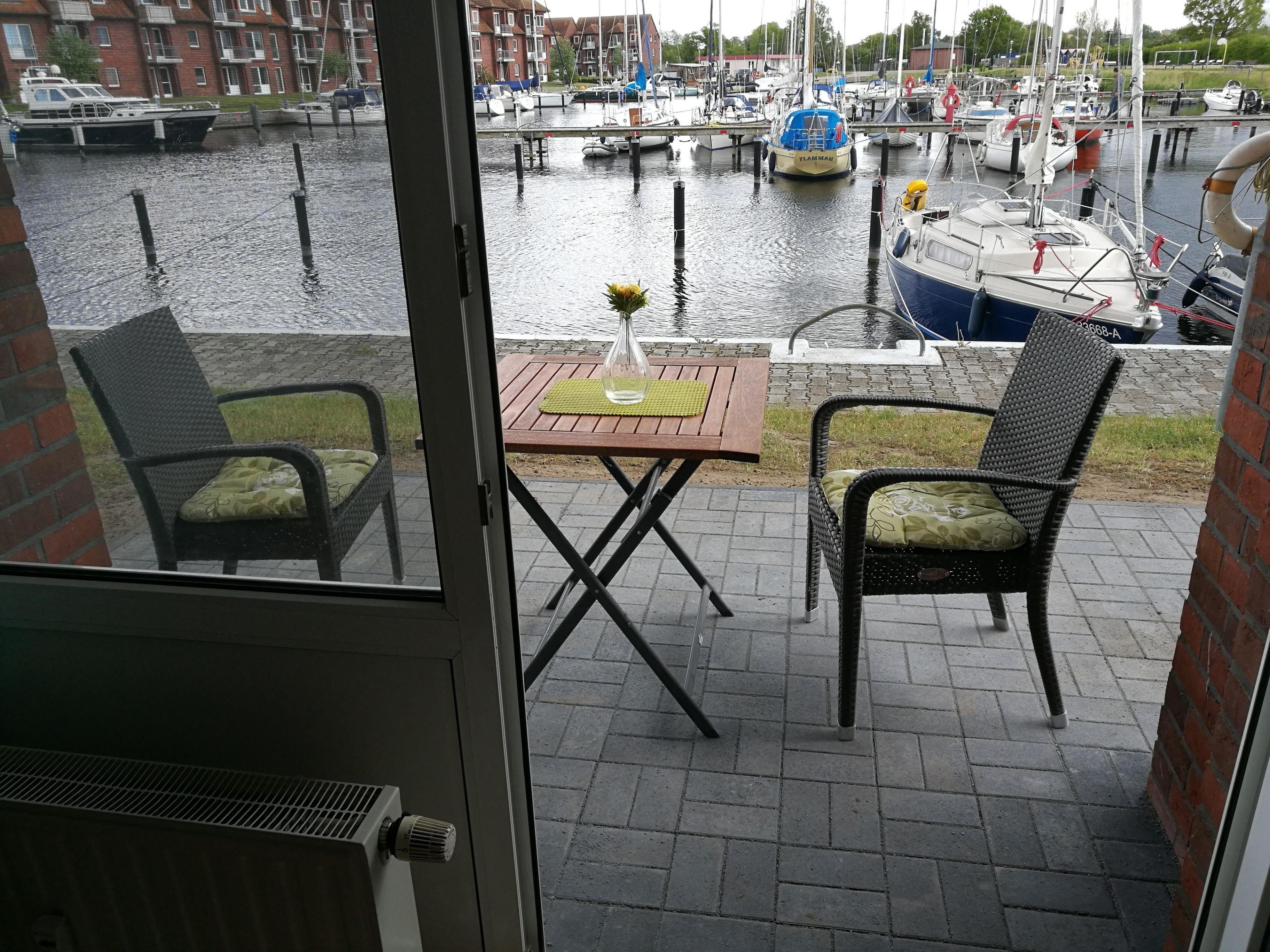 Zur Wohnung gehört eine Terrasse mit herrlichem Blick auf die Marina.