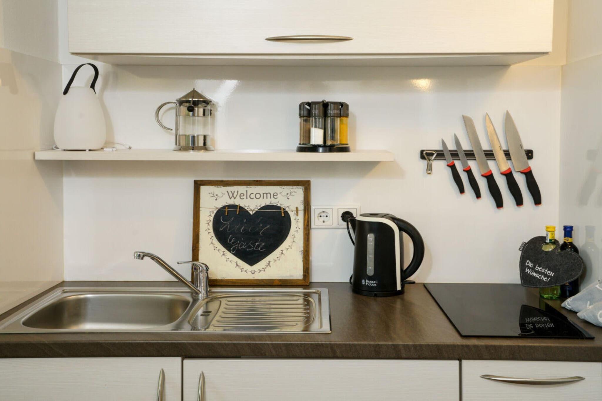 Velkommen! Vores moderne ferielejlighed ligger i stueetagen med direkte adgang til den parklignende have. Hyggelig og ideel til 1 til 2 gæster. Den Gamle Præstegård har 3 lejligheder, som også kan kombineres. Uanset om du har lyst til at grille eller drikke kaffe i haven, eller slappe af i den private sauna – alt er muligt her!