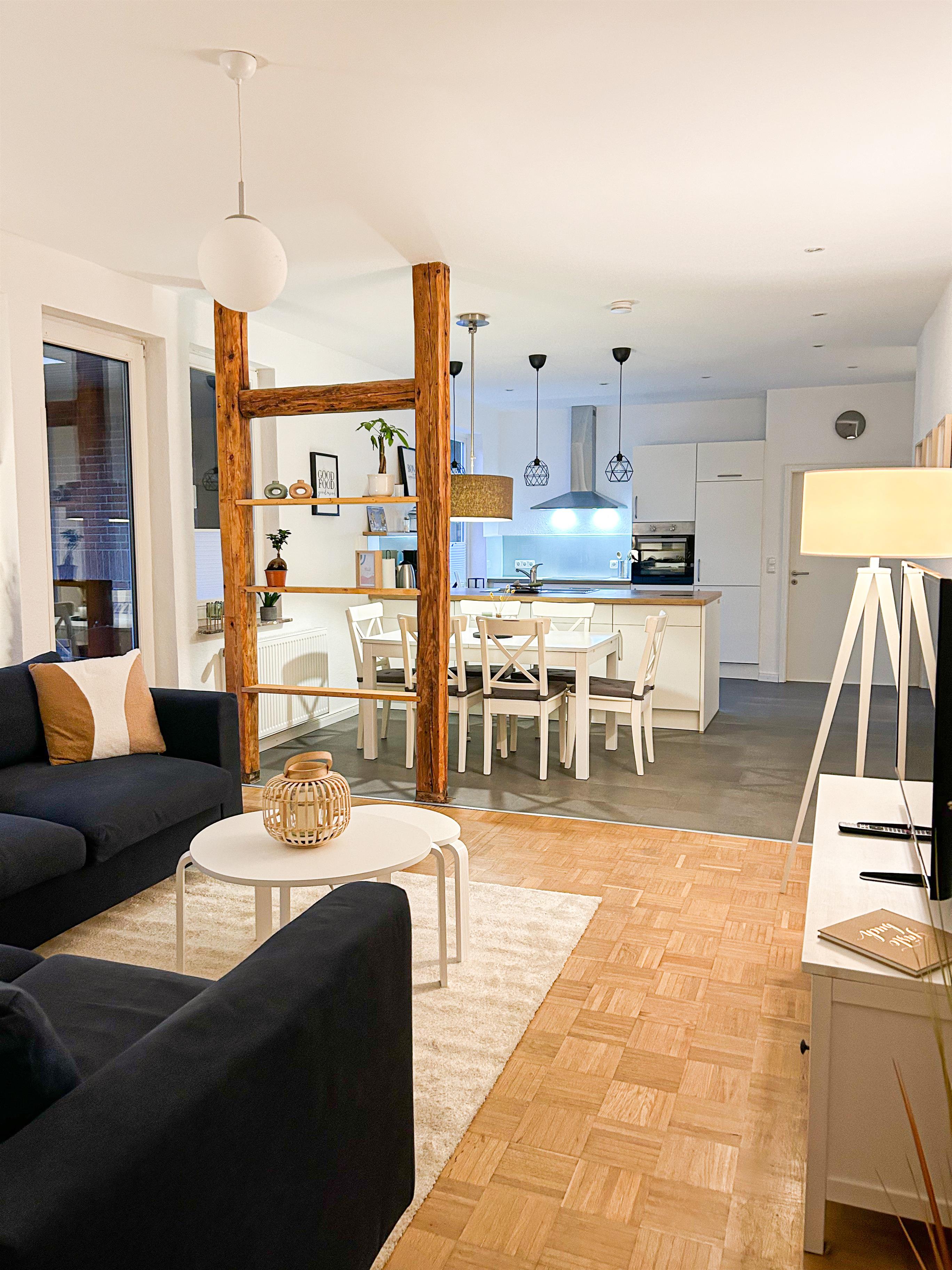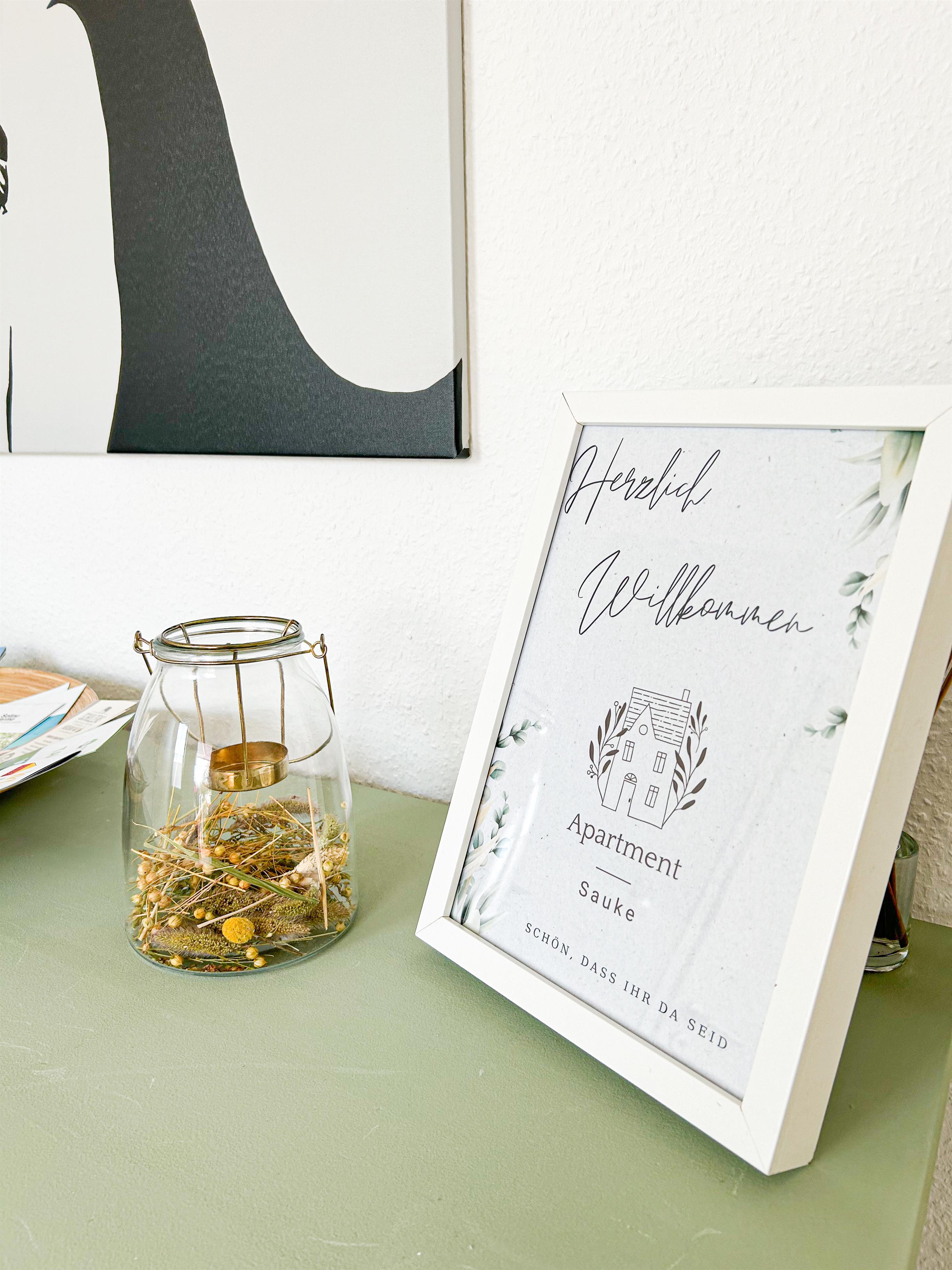 Die Ferienwohnung Sauke verfügt über 2 Schlafzimmer, 1 Wohn/-Essbereich, eine offene Küche mit Insel, 2 Badezimmer mit Regenduschen, einen geräumigen Wintergarten mit offenem Kamin und Tischkicker sowie einem direkten Zugang zum eigenen Garten.