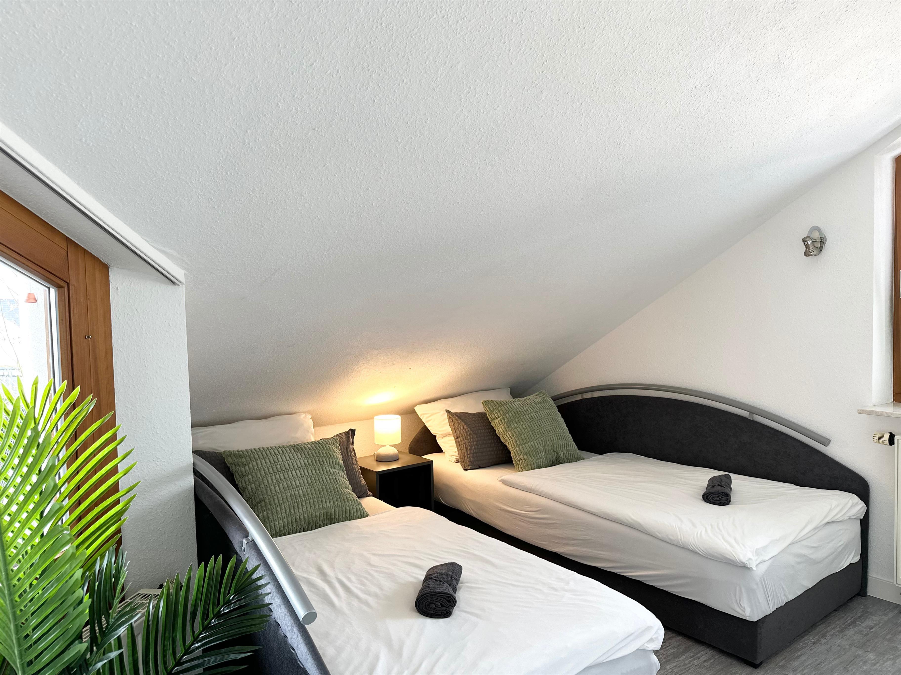 Hier erwarten dich zwei 0,90 m Einzelbetten, die je nach Bedarf zu einem großen Doppelbett zusammengeschoben werden können – ideal für eine individuelle Schlaflösung.