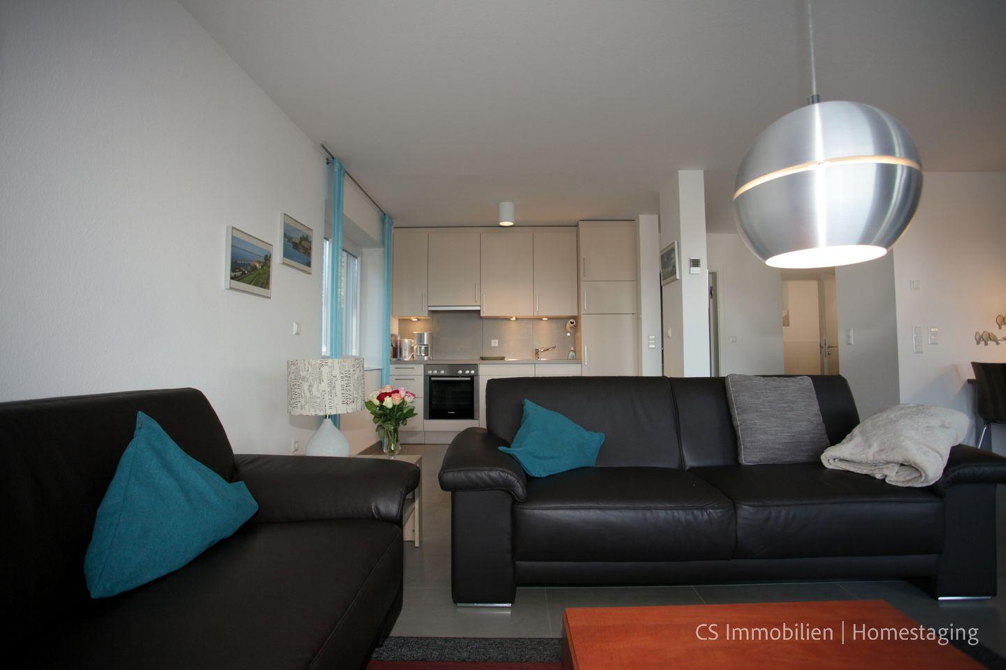 Die 64 m² große Wohnung bietet Platz für bis zu vier Personen und eine moderne, stilvolle Einrichtung mit Liebe zum Detail. Das großzügige Schlafzimmer ist mit einem komfortablen Boxspringbett und einem geräumigen Schrank ausgestattet. Im kombinierten Wohn-/Essbereich mit offener Küche befindet sich ein hochwertiges Lederschlafsofa, das zwei weiteren Personen Platz bietet. Das Badezimmer verfügt über eine Badewanne, einen Waschtisch, eine Toilette und eine Waschmaschine.
