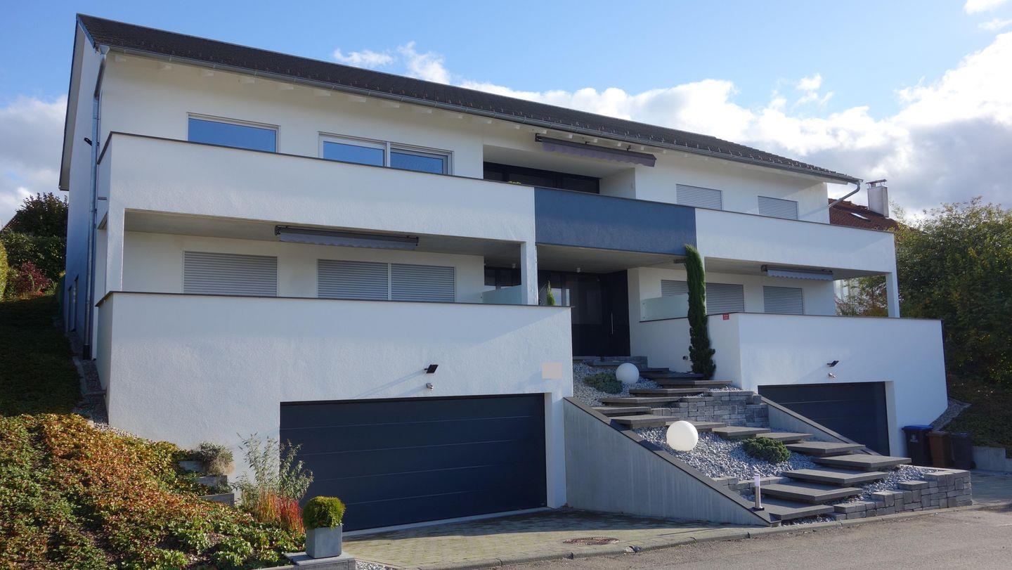 Zur Wohnung gelangen Sie über die Außentreppen: von der Bergstraße etwa 37 Stufen oder von der Garage aus 85 Stufen. Die Wohnung befindet sich hinter der zweiten Tür rechts. Ein Duplex-Parkplatz (oben, Nummer 69) gehört zur Wohnung. Bitte beachten Sie die Maße (siehe Bilder). Die Garage ist über den Waldweg (Hausnummer 27a) erreichbar. Direkt an der Garage befinden sich der Müllraum (rechts) und ein Fahrradkeller (links).