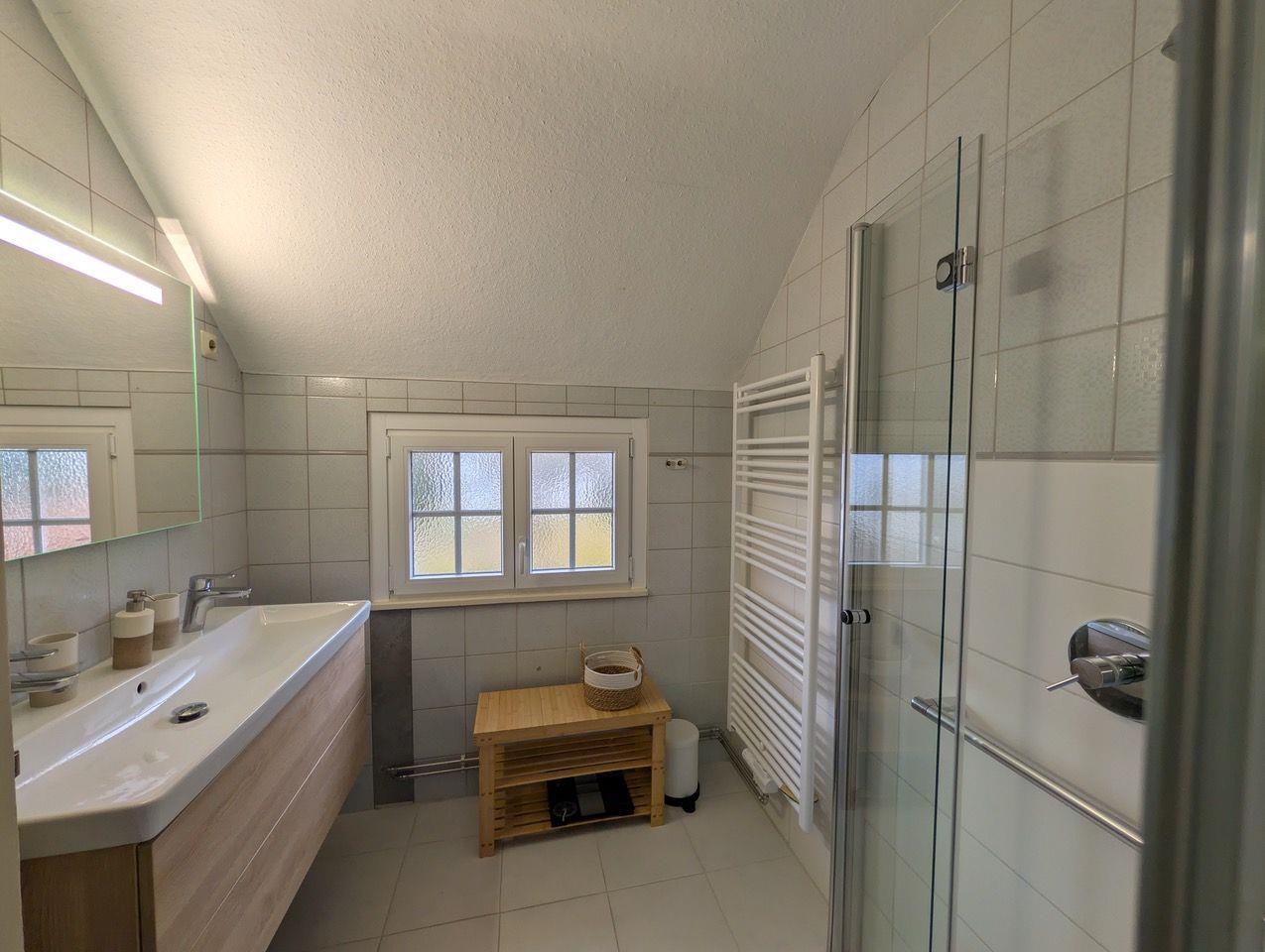 Kinder ab 6 Jahre freuen sich über das Dachgeschoss als Schlafplatz und Rückzugsort (mit zwei Einzelbetten, ACHTUNG steile Treppe).